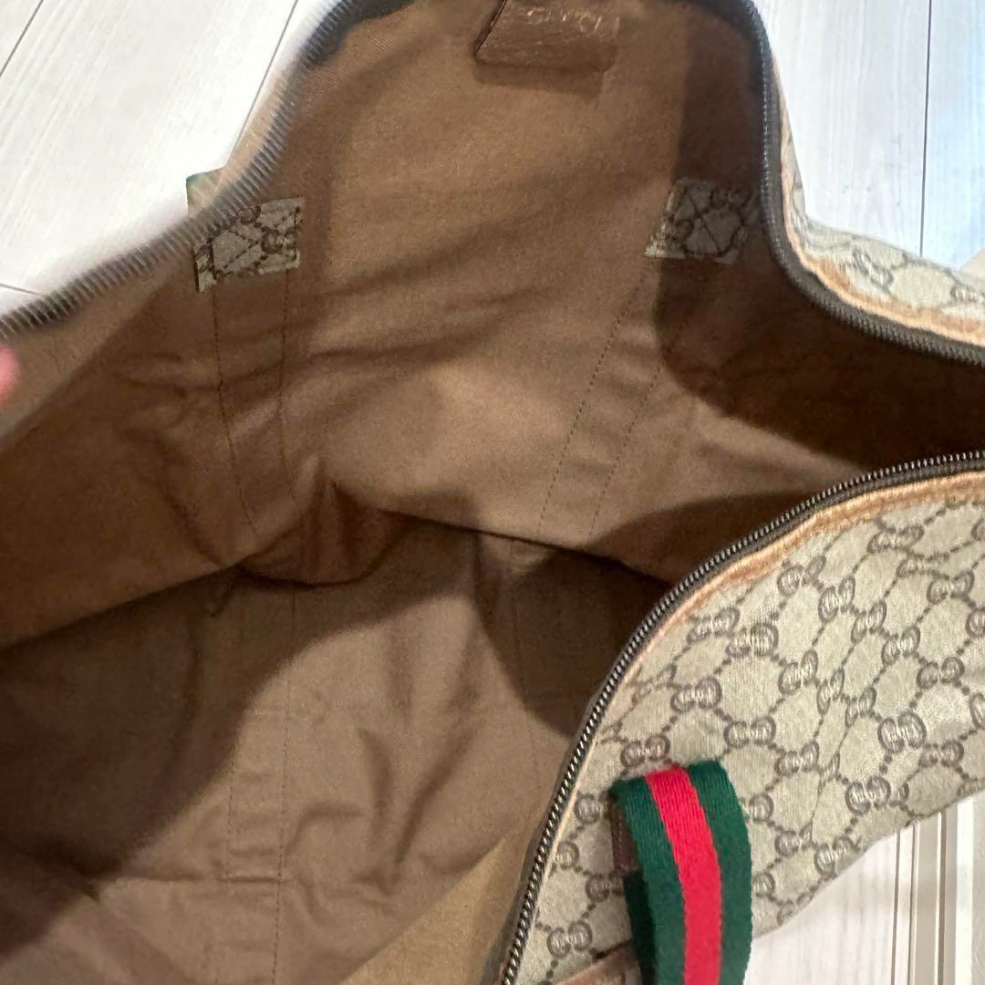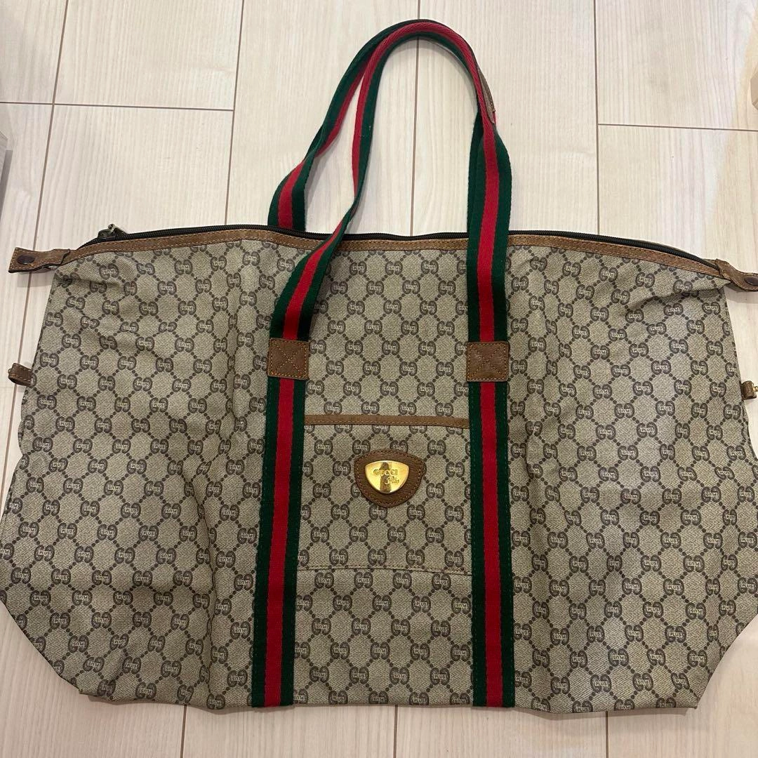グッチのボストンバッグです。 数回旅行の際に使用しました。 マチがあり使いやすいと思います。 【サイズ】 縦 約32cm 横 約44cm 幅 約16cm 持ち手 約24cm ※素人寸法のため多少の誤差はご了承ください。 【状態】 保管中についたシワが若干ありますが、使用感はほぼなく、ヴィンテージ品としてはきれいな状態だと思います。 ※詳細は写真にてご確認の上、ご心配な箇所は事前にお問い合わせください。 ※あくまで中古品ですので、完璧な商品をお求めの方、また神経質な方は購入をお控え下さい。 【カラー】 ベージュ ブラウン 【素材】 レザー 本革 PVC 【付属品】 なし ご不明点はお気軽にお問い合わせください。