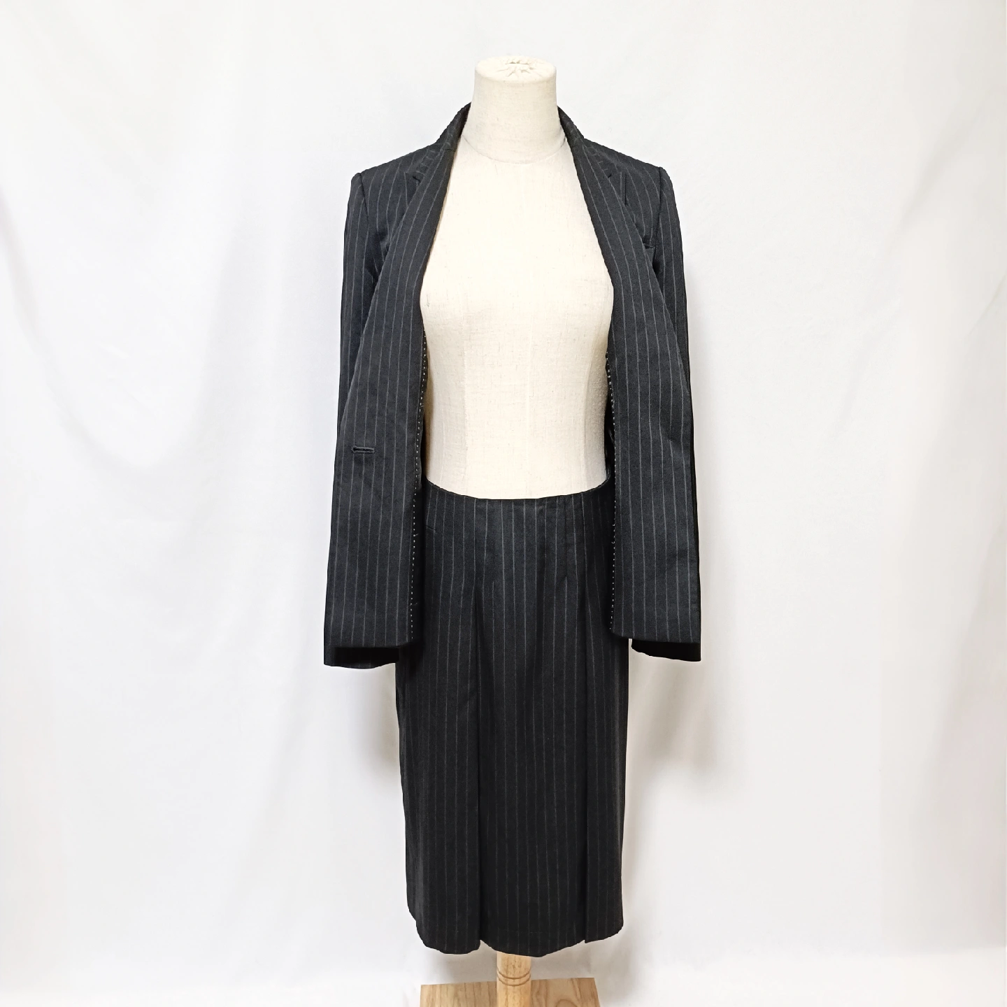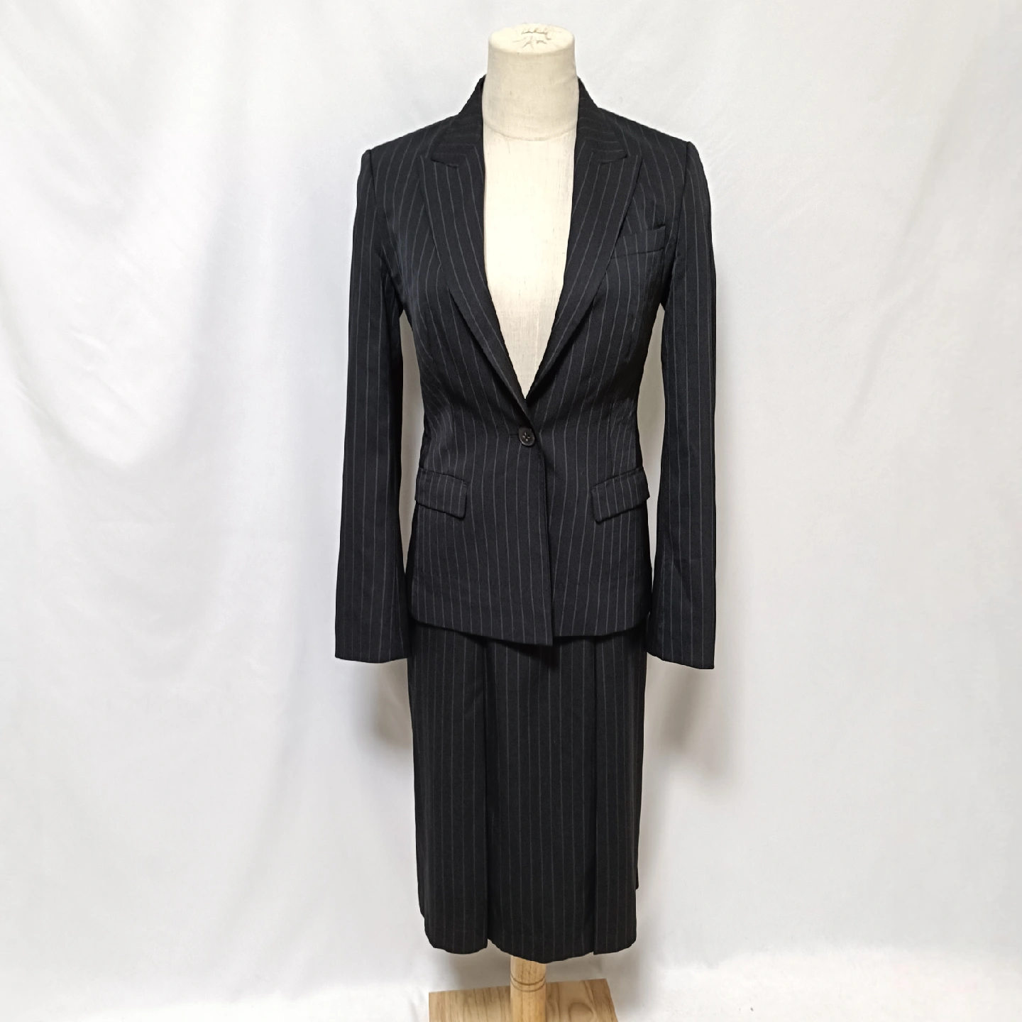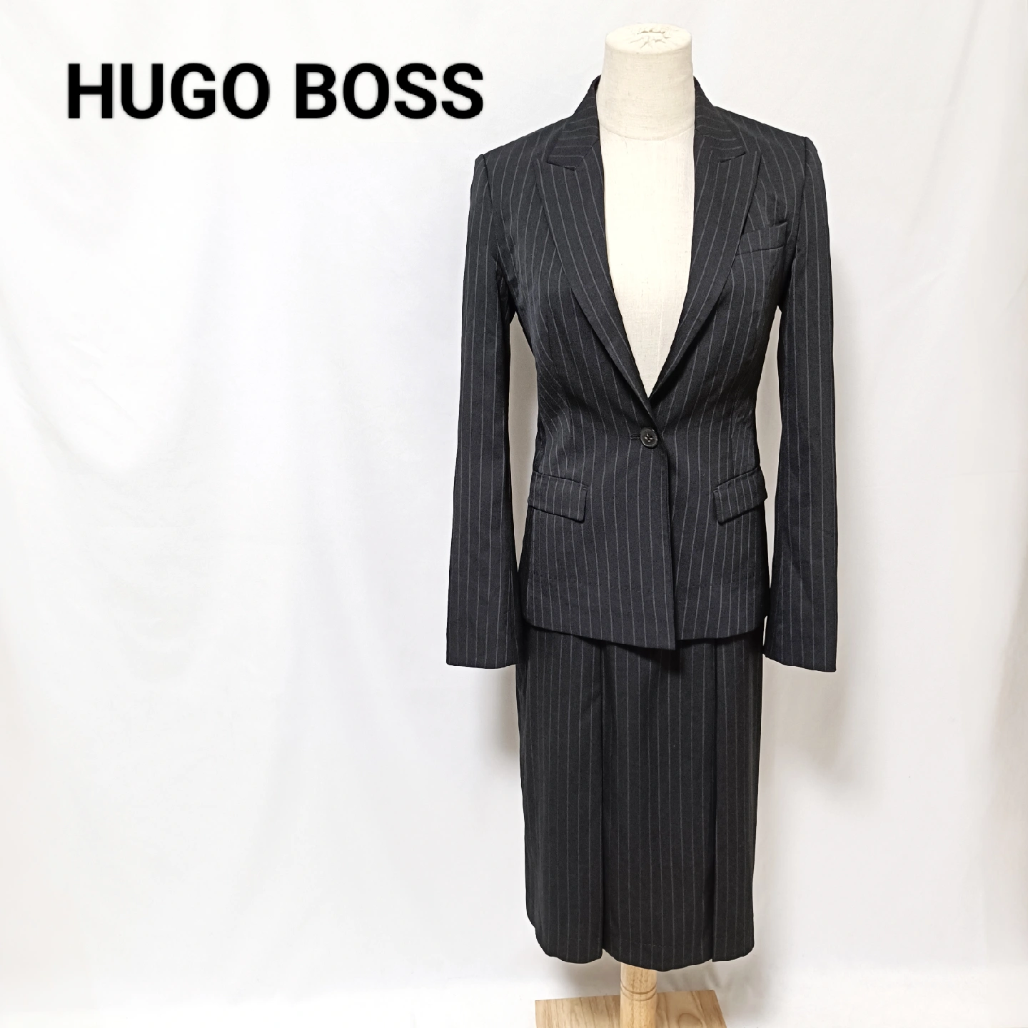 【美品】ヒューゴボス ヴァージンウール ピンストライプ スカートスーツ S-M