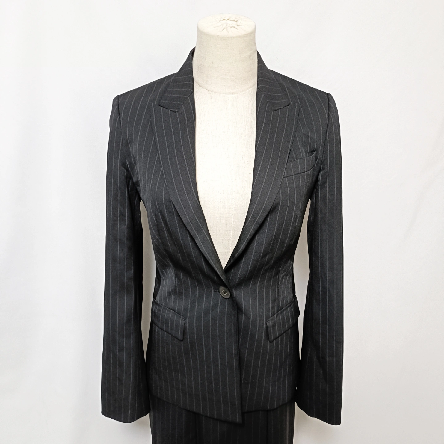 ご覧いただきありがとうございます! ​HUGO BOSS(ヒューゴボス)の高級感あふれるピンストライプ柄のスカートスーツです。 ジャケットは女性らしいウエストラインを美しく見せるシャープなシルエット。 スカートは、広がりすぎない上品なミディ丈で、裾にかけて緩やかにプリーツのようなディテールがあり、エレガントな印象です。 #joymaxお得なプロフへ #ゆうの古着屋さん_レディースセットアップ □商品名□ ​【美品】ヒューゴボス ヴァージンウール ピンストライプ スカートスーツ S-M □ブランド□ HUGO BOSS ヒューゴボス □表記サイズ□ DE 34 / FR 36 / US 4 / IT 38 (日本サイズ S〜M相当) □実寸サイズ(cm) □ 【床置きサイズ】 ジャケット 着丈:60 肩幅:38 身幅︰40 袖丈:60 スカート ウエスト︰36 着丈︰60 ※実寸につきまして多少の誤差はご了承ください。 ※表記サイズだけではなく実寸のサイズをご確認ください。 □カラー□ ブラック □素材□ ヴァージンウール 99% エラスタン 1% □コンディション□ 目立った汚れやダメージなど特にございません。 ※汚れはできる限り写真にて掲載しております。まずは画像をご確認ください。 どうぞよろしくお願い致します。 □商品管理番号□ P2-V-5485