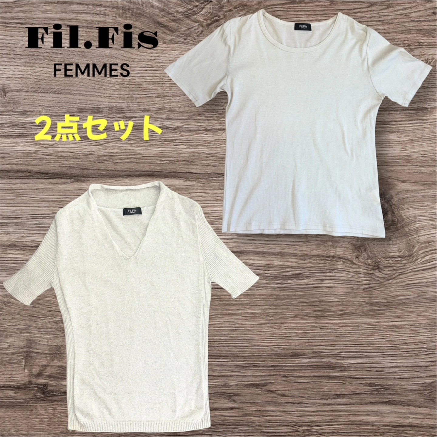 Fil.Fisの半袖Tシャツと半袖サマーニットの2点セット ☆美品 ☆レディース 【半袖Tシャツ】 ☆カラー…ベージュ ☆サイズ…38 (平置採寸)肩幅:36、身幅:40、袖丈:21、着丈:52 【半袖サマーニット】 ☆カラー…グレー ☆ラメ入りでキラキラして可愛いです ☆サイズ…表記なし (平置採寸)肩幅:35、身幅:37、袖丈:19.5、着丈:56 ※平置採寸は採寸上、多少の誤差がありますのでご了承ください どちらもほとんど使用していないので、目立った汚れや破れ等もなく美品です! 他サイトでも出品中です。 他で売れた場合、急に削除しますので、ご了承ください