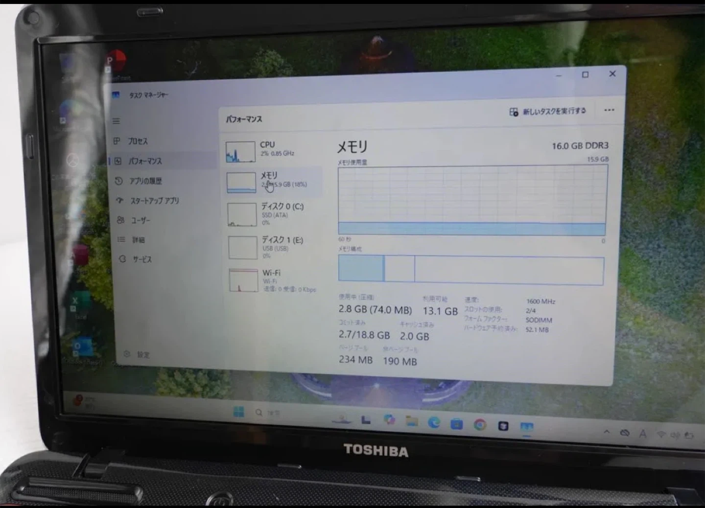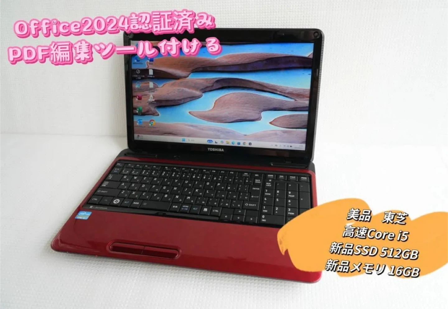 ★中古パソコン★ 中古パソコンネットショップ。パソコン初心者の方でも安心してお得に使って頂く為に、困った時に助けられるお客様サポートに力を入れている ①office2024認証済み ② AIエディタCursor のインストール、日本語設定方法付ける ③ PDFファイルに対する、新規、編集、等等最強ツール、永年無料 ④ Windows11 25H2にアップグレードしています。 ★商品詳細★ 商品名:東芝 TOSHIBA OS:Windows11 64bit pro CPU:Intel(R) Core(TM) i5-2410M CPU @ 2.30GHz デュアルコア高性能CPU♪ メモリ:16GB 高解像度液晶(15.6 Wide (1366×768) HD液晶) 記憶装置:新品爆速SSD512GB 液晶:15.6型 通信:有線LAN、無線Wi-Fi ・USBポート OK ・イヤホンジャック OK ・キー /テンキー OK ・タッチパッド OK ・有線LAN/無線LAN OK ・HDMI OK ・SDカードスロット OK ・バッテリー充電 OK 中古劣化 ※ 消耗品の持ち時間は保証の対象外 状態:本体に擦りキズ、キーボードにテカリがございます。 ★こんな所が良いポイント★ ・office2024認証済みおよび常用ソフトが無料で付属 ・面倒な初期設定不要で、届いてすぐ使える! ・困った時の親切丁寧な無料サポートあり ・到着から3日間は返品可能なのでお試しでもOK 【天板】複数の細かい擦りキズや漆落ちある 【キーボード】非常良好です。 【パームレスト】良好です。細かい擦りキズある 【ディスプレイ】非常良好です。 【ヒンジ】非常良好です。 【底面】良好です。細かい擦りキズある バッテリー充電 OK ※ 消耗品のため、持ち時間は保証対象外、ACアダプターを用いて利用してください。 ※ あくまでも中古品ですのでご理解の上でご入札ください。