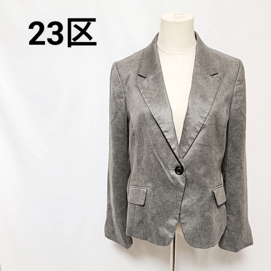 ​【美品】23区 一つ釦 テーラードジャケット 44 ウールライク グレー