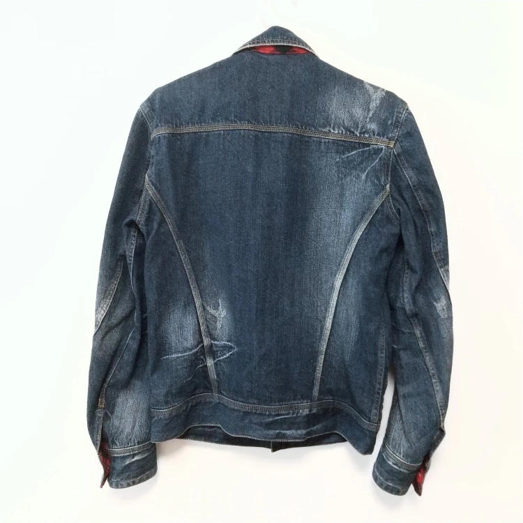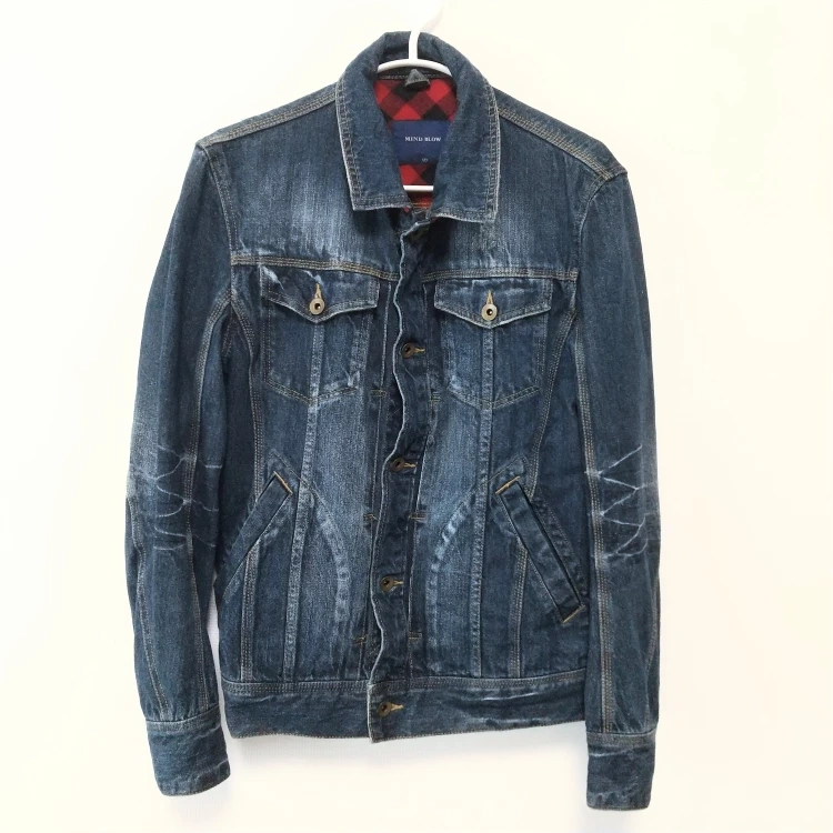 新大久保~池袋or大久保~新宿でのお渡しです(^-^) 【商品状態】数回着用(除菌消臭スプレー済) 目立った汚れナシ 【参考価格】約16500円 【販売価格】約75%OFFの4200円 【内 容】メンズ Gジャン デニムジャケット 【数 量】1着 【サ イ ズ】03 M 【身 幅】50cm 【着 丈】63.5cm 【身 丈】64.5cm 【袖 丈】64.5cm 【素 材】表布/綿100% 別布/(襟・ヨーク)綿100% 【仕 様】ボタン5個 外胸ポケット2 サイドポケット2 【 色 】紺 【製 造 国】中国 【ブランド】MIND BLOW マインドブロウ 【詳 細】知人180cm男性モデル着用品
