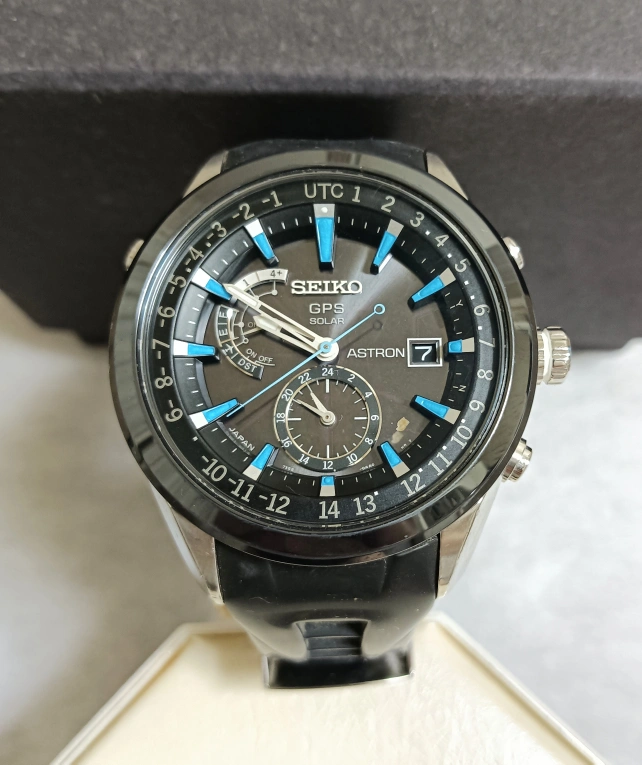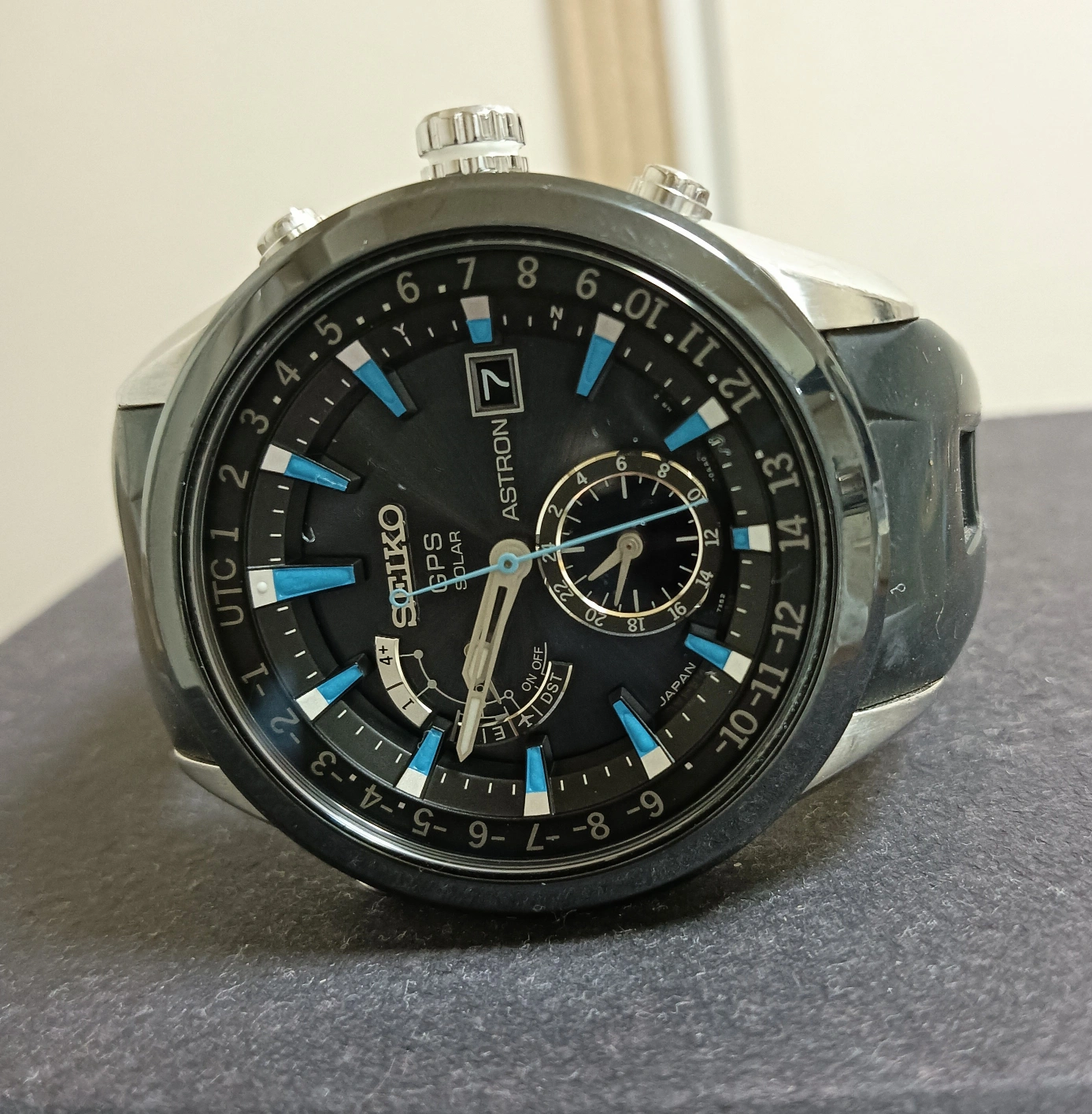 ★★ モチロン正常作動中です。 SEIKO アストロン セイコーアストロン GPS電波ソーラー 腕時 計。 型番 SBXA009 購入価格 160,000円 ★★ 説明するまでもなくSEIKOの超高性能で 世界的にも大人気なアストロン。 写真の通り全体的にも非常に綺麗な状態と思いますが、現物のみとなります。 腕周り 約15〜21㎝ color ブラックベース&ブルー 現物のみとなります。 ★★ - ブランド: SEIKO - モデル: ASTRON GPS SOLAR - 色: ブラック - 特徴: GPS機能、ソーラー駆動 - バンド素材: ラバー - 日付表示: あり