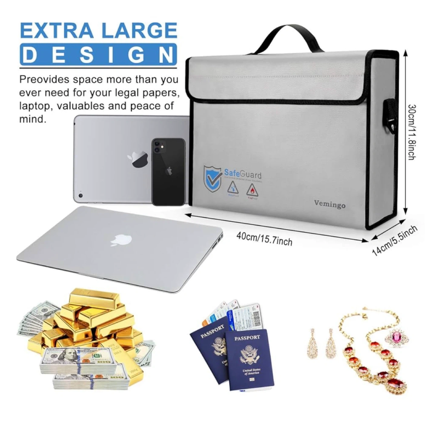 特に目立った汚れはございませんが、中に部分的にシミの様な部分がございます。 大容量:A4書類はもちろん、ラップトップを収納するのにも十分な大きさです。内部コンパートメントを備えて、大切な書類や印鑑通帳などのものをきれいに保管出来ます。 素材:主な素材はグラスファイバーですが、手に刺激を減らすために表面にシリコーンでおおわれています、手触りは優しいです。チャックの部分も防炎カバーが付いています。 携帯便利:軽量、手提げも付いており、オフィスの収納や自宅での持ち運びに便利になります、いつでもどこでも使用できます。 耐火防水性:表面の難燃性素材ガラス繊維の2層構造により、華氏2000度の熱に耐えられます。 また、ケース全体を密閉できる構造で、被害を最低限にします。 そして、雨の日でも水が中に染み込みにくいし、汚れにも拭き込むやすいです。発火の事故などに安全に貴重品を管理できます。 Vemingo 耐火バッグ 書類 保管ケース 金庫耐火防水バッグ 防炎 安心保管袋 手提げ A4サイズ対応 XB-020
