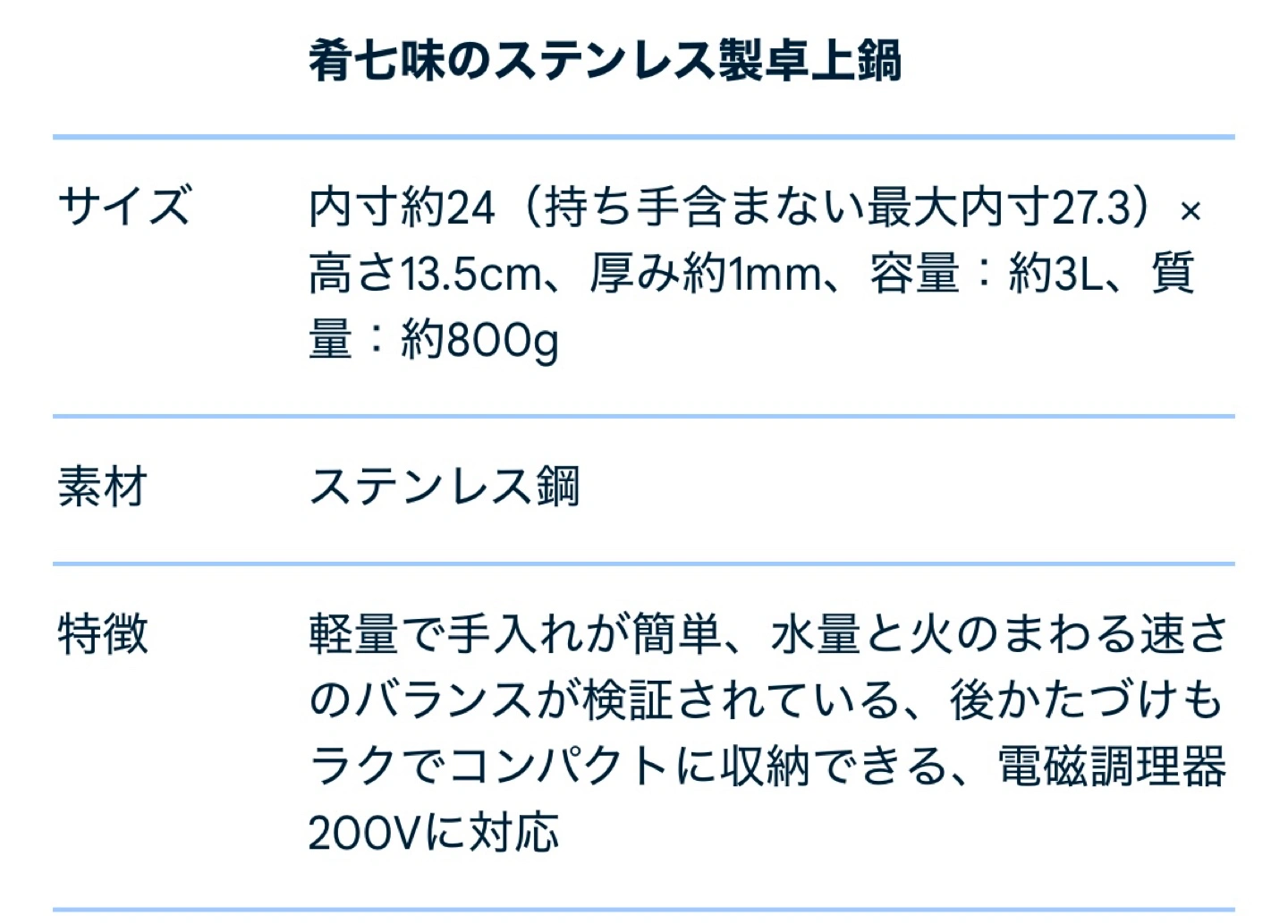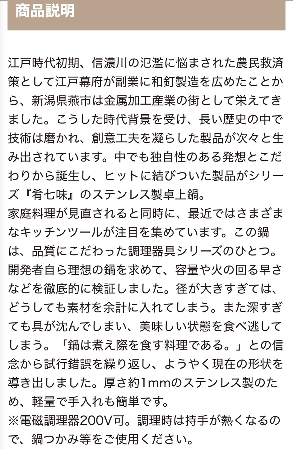 あたたかさ寒い時期に活躍しそうな卓上鍋です。 目立った傷や汚れはありませんが、数回使用した中古品であることをご理解ください。 大きさなどの仕様詳細は8枚目以降の写真をご覧ください。