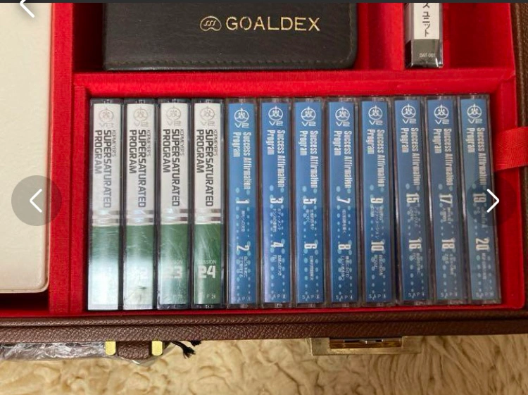 【セット内容】 ❶スーパーサチュレイテッドプログラムテープ1〜24巻(写真1〜3) ❷サクセスアファーメーションプログラムテープ1〜20巻(写真3) ❸願望実現シネマティクスユニットテープ(写真4) ❹ サクセスアファーメーションプログラムノート セッション1〜12(写真5) ❺ サクセスアファーメーションプログラムノート セッション13〜30(写真6) ❻集中力を高めるアフターイメージメディテイションカードセット(写真7) ❼ゴールテックス手帳(写真8) ❽願望実現目標必達チャートカードセット(写真9) ❾トランク ※購入価格セット1と2で約150万円 ※半分は開封していない状態で折れ汚れ等有りません。 ※大変かさばり重いものですので、自宅まで取りに来てくださるとありがたいです。
