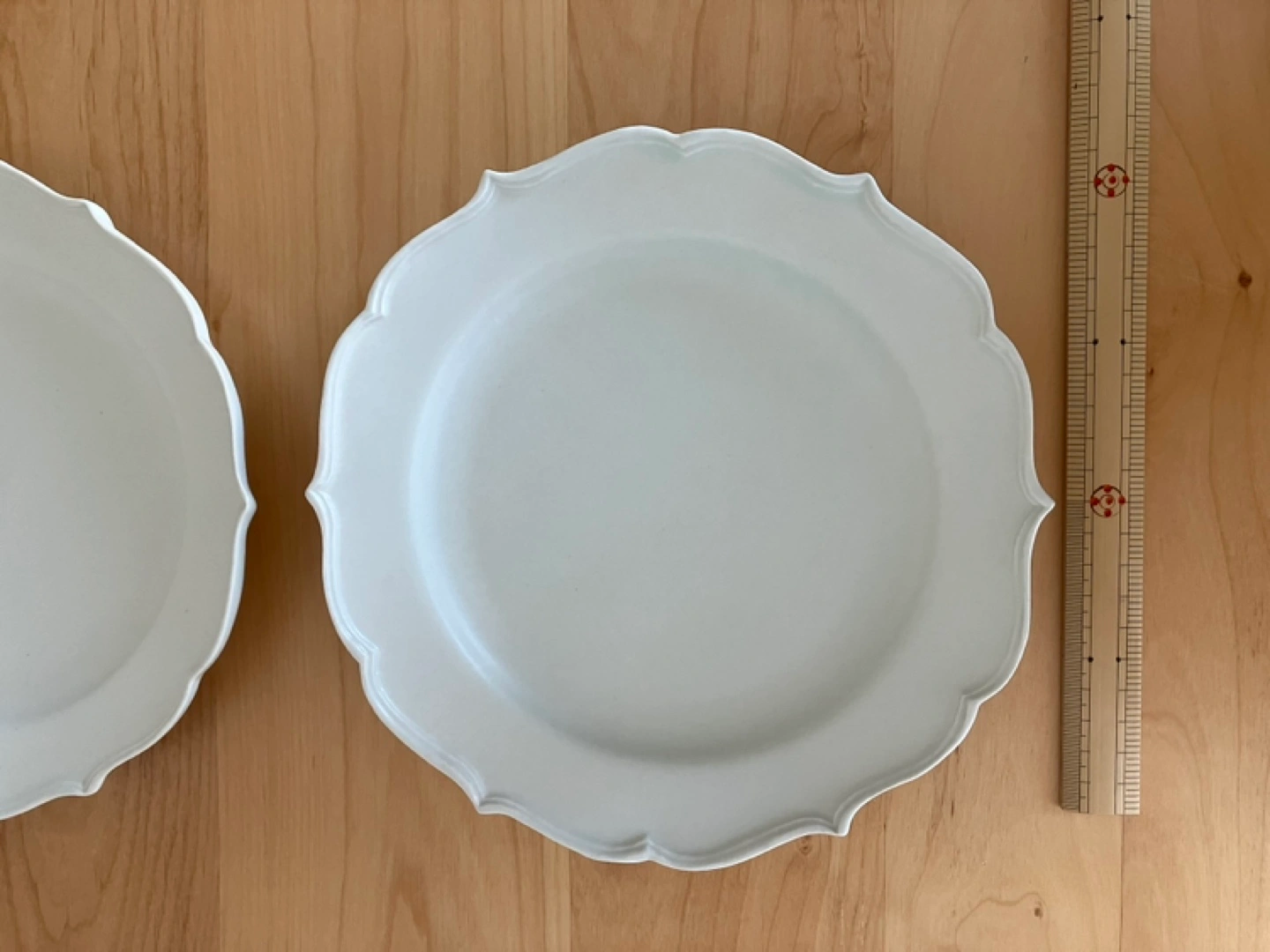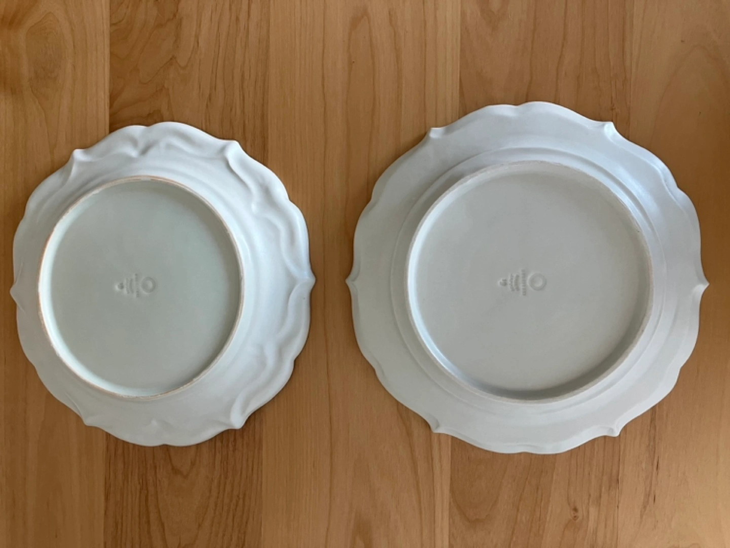 一目惚れで購入した素敵なお皿です。 1枚を一度使用したきり、保管していました。 持て余しており、勿体ないので出品します。 製品の特性をご理解したうえでご検討よろしくお願いします。若干の個体差があります。 1枚はお皿の裏の縁がオレンジがかっていますが、購入時からのものです。 オフホワイトのマットな質感と、やわらかな曲線が美しく、1枚でも特別な存在感が生まれます。 稜花リム皿 L は美しいリムが特徴で、料理がひときわ引き立ちます。 ワンプレートとしてもお使いいただるサイズです。 ペット、喫煙者なしです。 (定価 8,800円/1枚) #臼杵焼 #リム皿