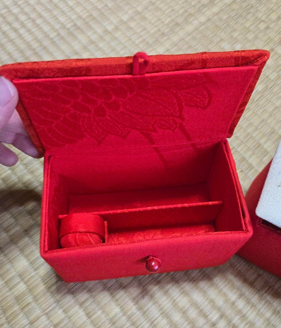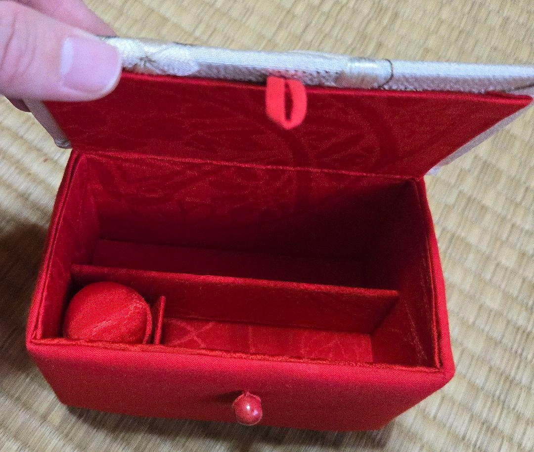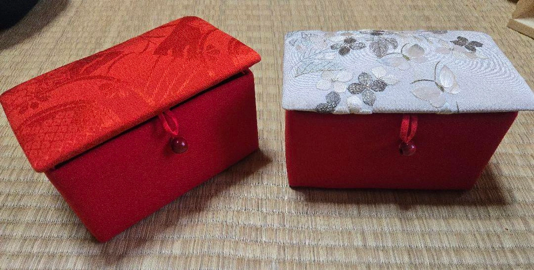 あたたかさ華やかな花柄の布製小物入れ、赤と白の2個セットです。内部に仕切りがあります。 未使用ですが、経年劣化でシミがあります。 ご希望の方はお気軽にご連絡ください。