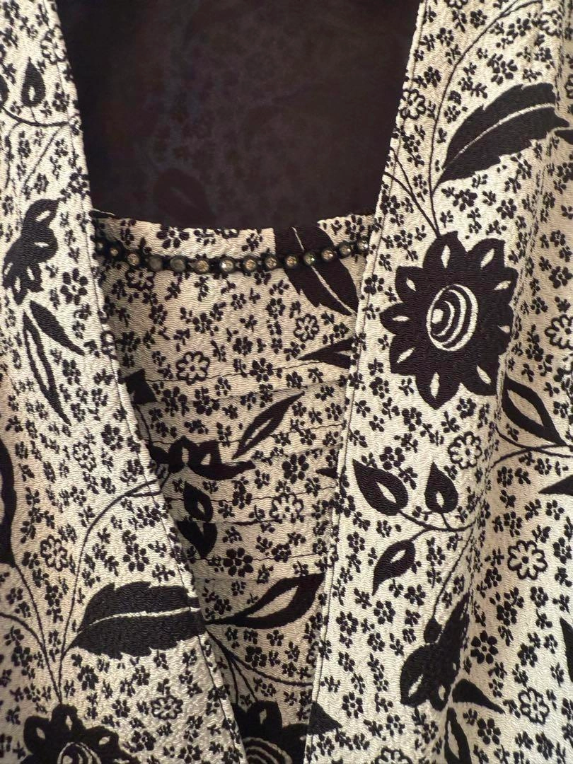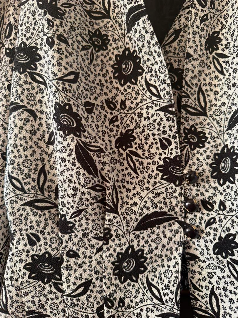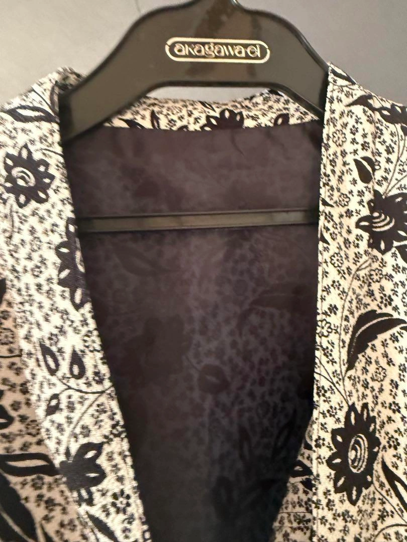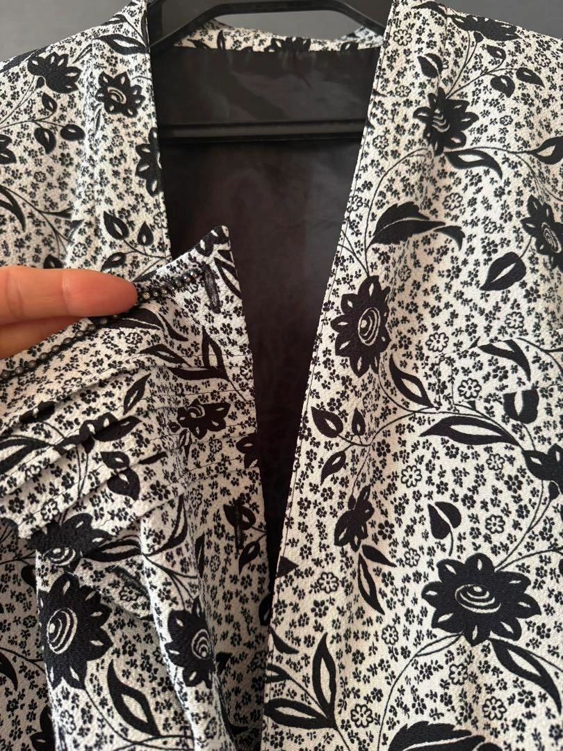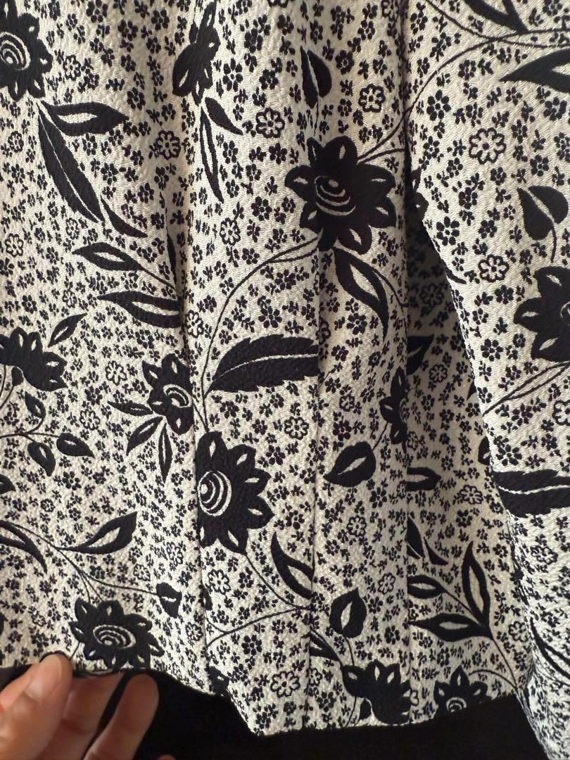 白黒の花柄デザインのテーラードジャケットです。 洗濯機でネット洗いできていました。汗ばむ時期にもサラッとした肌触りで重宝します。 カラー: 白黒の花柄 デザイン: テーラードジャケット 素材: 不明、柔らかい生地 スタイル: カジュアル ポリエステル100% サイズ:9号 バスト:82cm 身長:156cm 実寸 肩幅 40㎝ 着丈 52㎝ 身幅 49.5㎝ 袖丈 52㎝ 裾幅 47.5㎝ 素人計測のため、多少の誤差はご容赦ください。 ご希望の方はお気軽にご連絡ください。