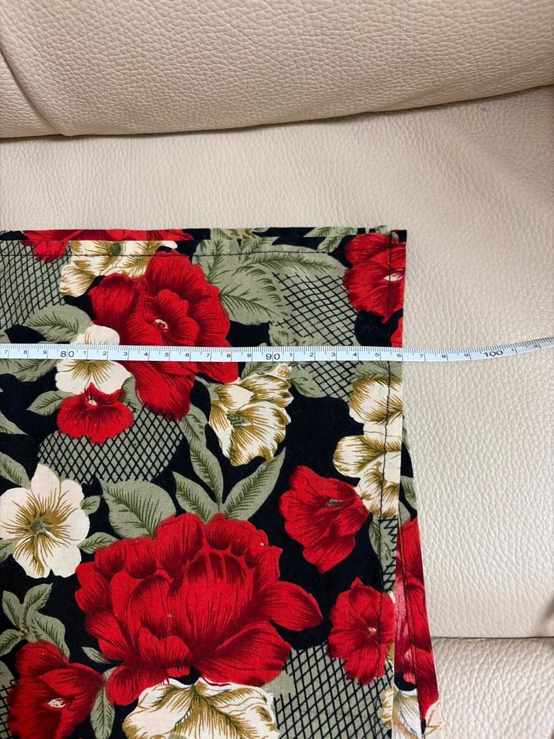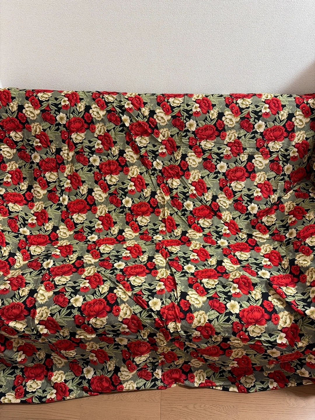 花柄の生地です ・サイズ:約190㎝×190㎝ サイズは、大きすぎてメジャーでは計れず 写真は、布を半分に折った長さでメジャーの写真を撮っています。 ・色:赤、白、黒、緑 自宅保管していた布切れです。 写真5枚でご確認いただき こちらが気にならない方、よろしくお願いします。 受け渡し場所は、ローソン港北師岡店の他に 大倉山駅、トレッサ横浜、サミット菊名店、 菊名駅も可能ですので、ご相談ください。