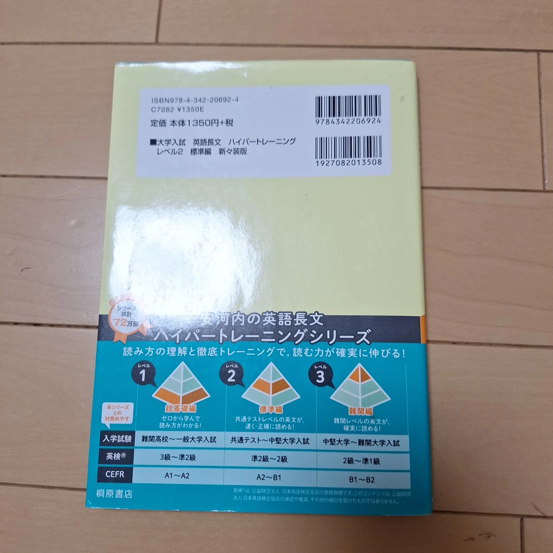 英語長文問題集です。 CDは付いておりません 【情報】 シリーズ:ハイパートレーニング レベル:標準編 レベル2 定価:1350円+税 【状態】 使用感少なめ 中古品であることご了承ください 上板橋駅でも取り引き可能です