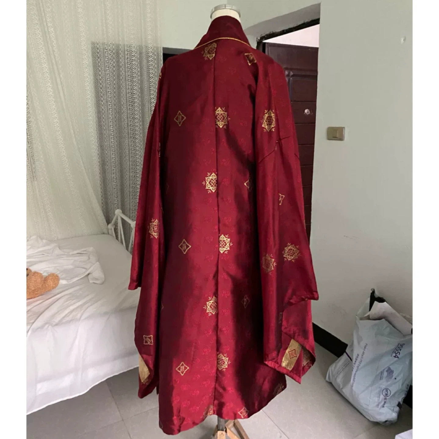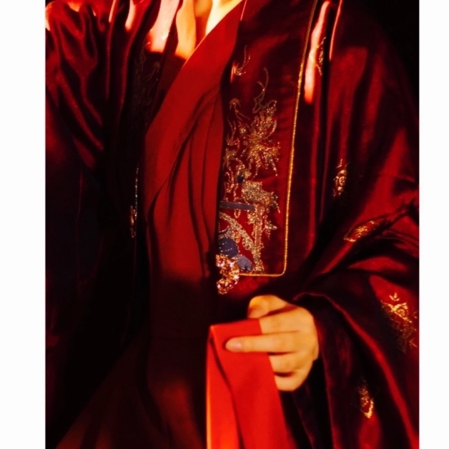 長日燈明 ファー對襟裘衣 赤生成色ロングコート 中華風 明製漢服 新年 結婚式