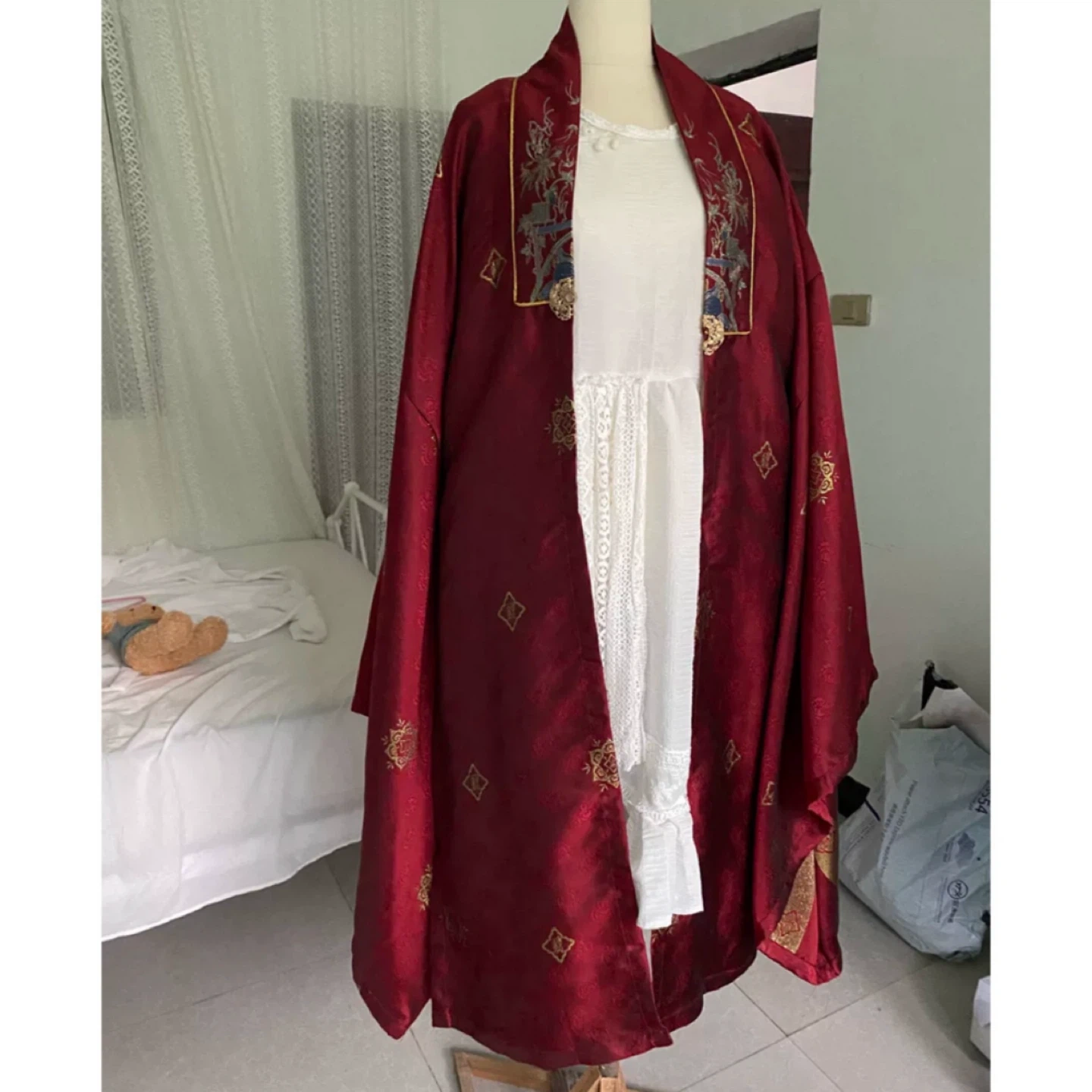 肩上雪 桜刺繍 长干寺 白黒色ロングコート 中国伝統衣装 宋制漢服着物 侘び寂び