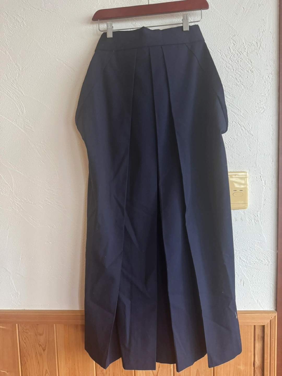 ・色:シンプルな紺色 商品状態:中古室内保管 サイズ:100㎝(腰の上端から裾まで-163㎝のものが着用しました。 中古品であるということをご了承の上、ご購入ください。 シワになってしまっているので、アイロンをかけてご使用ください。 ご不明点等ございましたらご連絡ください。