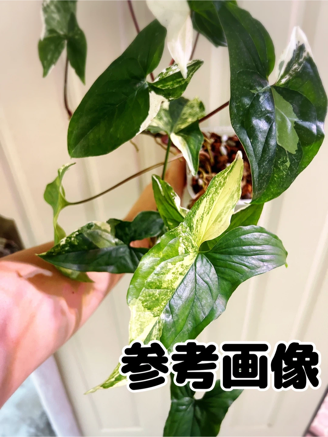 シンゴニウム フレンチマーブル 緑と白が混ざり合って綺麗な品種です。 まだ幼いので白が出てきていません。全部の葉に白が出るわけでもありません。 コントラストを楽しんでください。 参考画像載せておきます。 ・状態:良好、プラ鉢入り発根済み 鉢の後ろにフック付けてあります。 (植物なので形が変わっていきます。ご了承ください。) ・育て度:初級、イモ科なのでポトスくらい簡単。ポトスよりも簡単。曇り空程度の光必要、成長期は春より秋。 サイズ感は写真でご理解ください