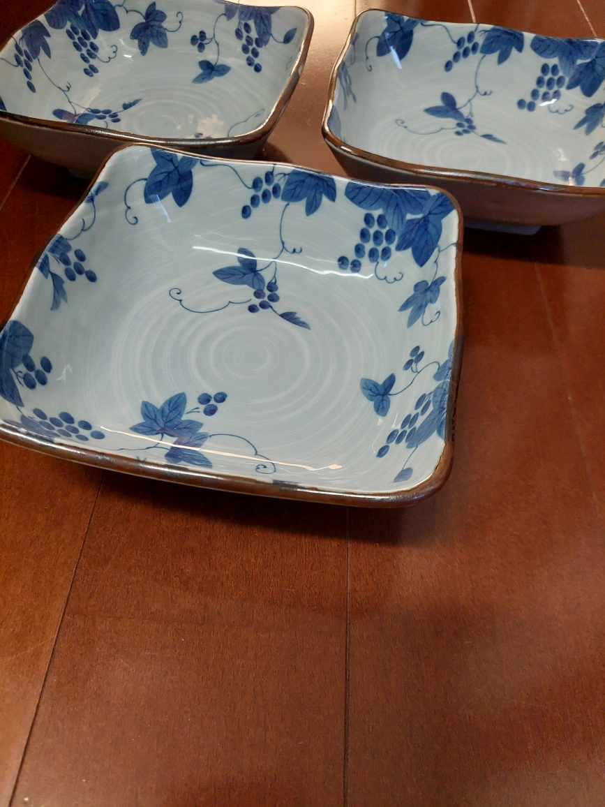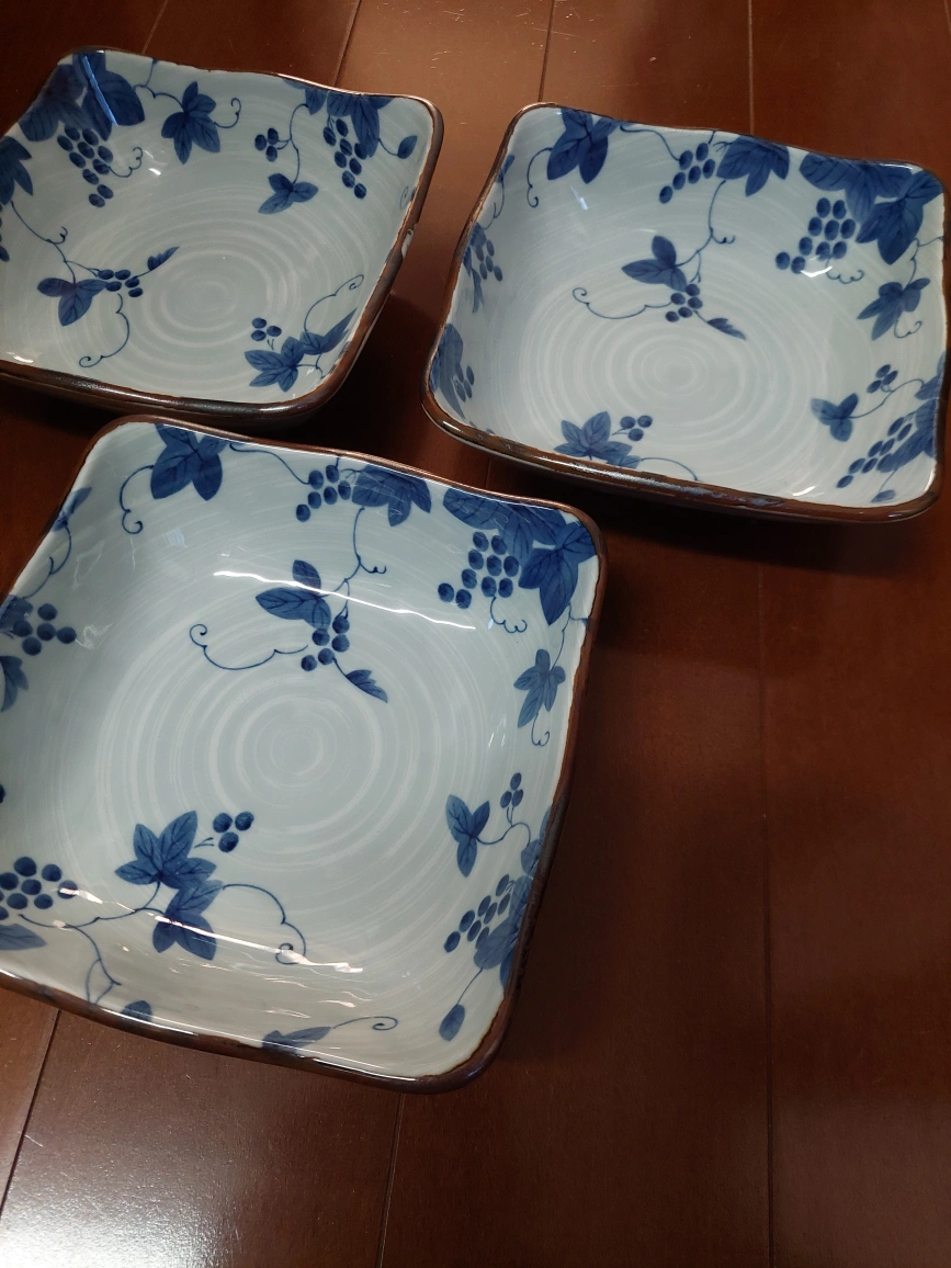 あたたかさ角皿中どんぶり3枚セットです ・色:白、青 ・柄:ぶどう ・状態 新品 自宅保管してます。 気になる方はご遠慮ください。 受渡し後のクレームはご遠慮ください。 支払いは現金のみでお願いいたします。 申し訳ないですが夜は受渡しできません。 受け渡し場所は白幡池公園、白楽駅、大口公園、白幡地区センター、白幡仲町公園、仲手原のセブンイレブンでも可能です。 よろしくお願いいたします。