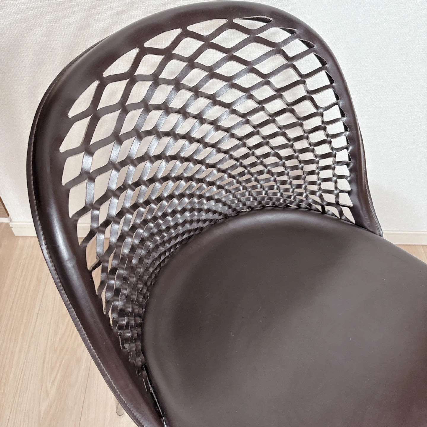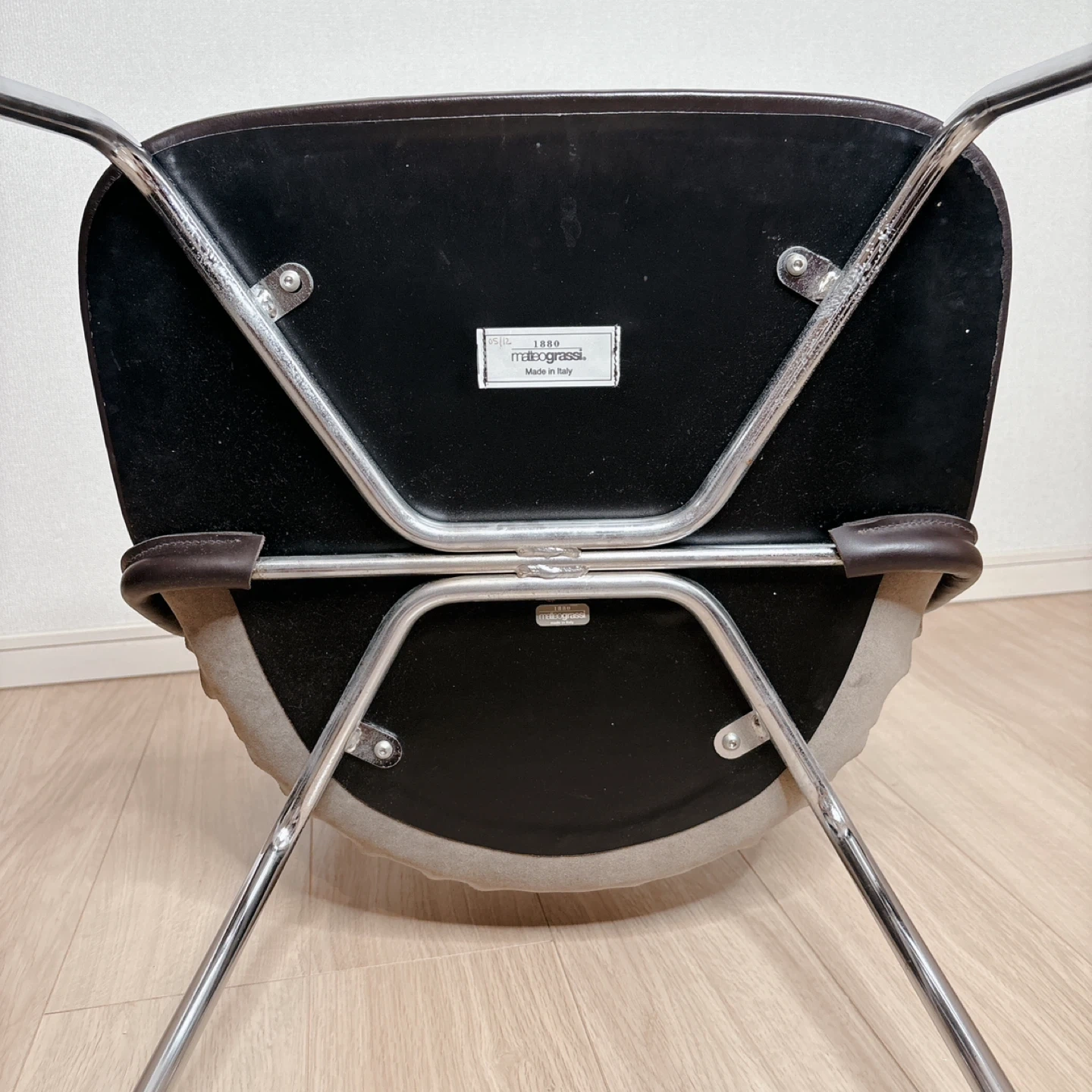 matteograssi イス2脚セット 元値16万円 ※1脚は問題ございませんが1脚の座面が外れてますのでジャンクとして下さい(座れます) 写真で確認下さい。 レザーに目立つ傷、汚れございませんのでまだまだご使用頂けます。 ◆商品詳細◆ イタリアのマテオグラッシ社製ダイニングチェア「ZOE」です。 菱形状に透かし加工が施された本革の背もたれが印象的。 正面からはもちろん、椅子をテーブルに収めた際の背面からの姿も秀麗です。 中古品となりますので完璧をお求めの方はご購入ご遠慮ください。