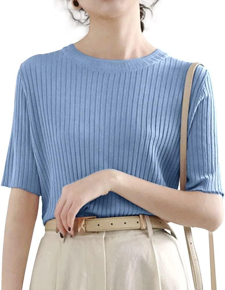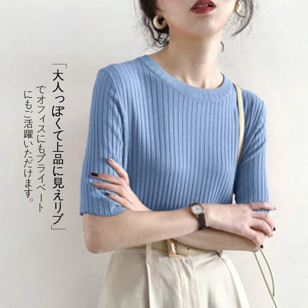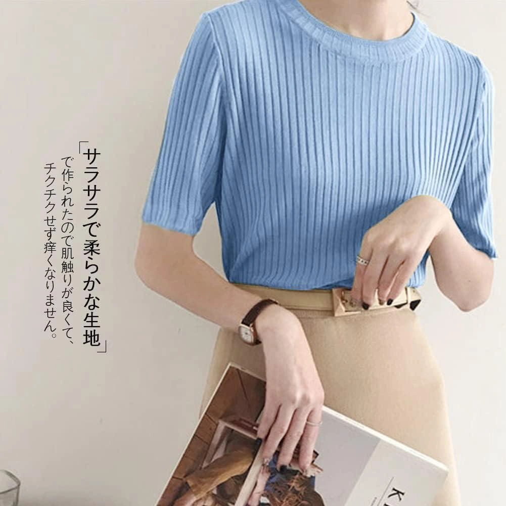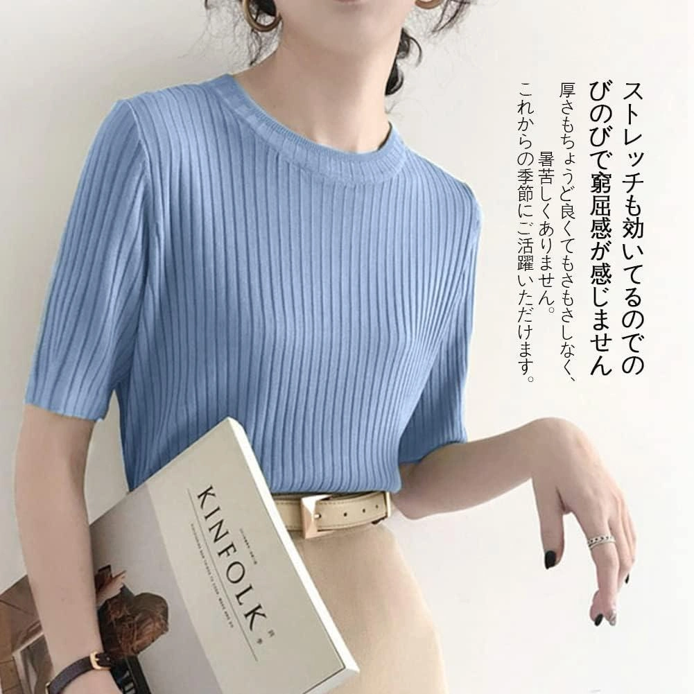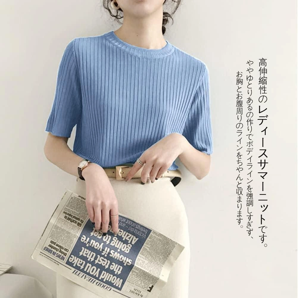 一度試着しております。 ◎高伸縮性のレディースサマーニットです。クールネックなので首周りがすっきり見えます。ゆとりがあるの作りでボデイラインを強調しすぎず、お胸とお腹周りのラインをちやんと収まって、着痩せ効果が期待できます。柔らかな生地で作られたので肌触りが良くて、チクチクせず痒く感じません。さらっとした伸縮性がある素材で、動きやすくて窮屈感が感じません。見た目も着た感じも涼しげこれからの夏にご活躍いただけます。 ◎豊富なカラーバリエーションが備えてご自由にお選びます。ブラック、ホワイト、グレー、ライトブルー、ベージュ、オリーブ、ライトピンク7色があるのでお好でお選びいただけます。推薦身長:150-175cm、対応体重40-75kg。洗濯説明:手洗いも洗濯機も対応できます。色落ちと色移りを避けるように、浸け置き洗いや濡れたままの放置しないでください。単品で洗濯してください。洗濯した後暴力で絞り干しないでください、型崩れる恐れがあるので、日陰で吊り干してください。ご注意:光と撮影角度により色合いと雰囲気及び着た感じがイメージと異なる場合はあります。予めご了承ください。光と撮影角度の影響でイメージと異なることがあります。 ◎無地でシンプルなデザインでおしゃれで可愛いです。シンプルなので着回し力が良いです。キャミソールや肌着と合わせてご愛着いただけます。デニムショットパンツ、スカート、ワイドパンツどんなコーデにも似合います。カジュアルはもちろん、通勤、お出かけ、女子会、遊園地、展覧会、記念写真を撮る、お見合い、デートなど様々なシーンにご活躍いただけるトップスです。使う人を選ばないので20代から40代まで着こなせます。 ニット レディース サマーニット リブ クールネック 着やせ 高伸縮 半袖 薄手 セーター 着回し良い 無地 シンプル おしゃれ 可愛い 7色 カットソー オフィス トップス 春 夏 カラー...ブルー ご希望の方はお気軽にご連絡ください。
