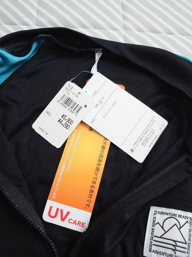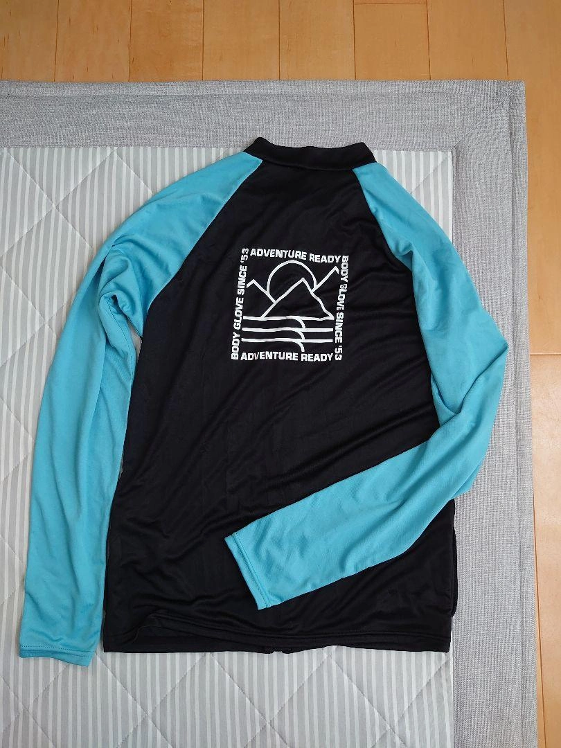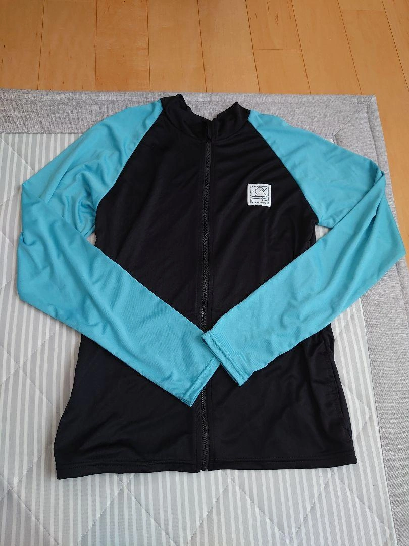 UVケア機能付きのフルジップ長袖ラッシュガード。 - 色: 黒と水色 - デザイン: フルジップ、長袖 - UVケア: UVケア機能あり - サイズ: 170cm ご覧いただきありがとうございます。 去年購入しましたが使用しないままサイズアウトした為お譲りします。 買った時には気付かなかったのですが右腕部分に小さな穴が開いています。 ご承知頂ける方宜しくお願いします。 ご希望の方はお気軽にご連絡ください。