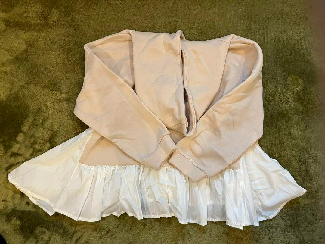 【購入前に確認ください】 ▼昨年購入。1度試着しましたが、自分には似合わないか、保管したままでした。着用予定でしたのでタグは切ってあります。 ▼サンプル品や1点物を扱う衣料品店で購入しています。サンプル品の表記はなかったものの、衣類類など見当たらずです。素材は不明ですが、柔らかくて暖かいです。 ▼丈は少し短いように感じます。 着丈約44cm ▼フリルが可愛いですが、私には可愛過ぎました。これ1枚で着ても可愛いです。 ▼追記します。(11/21) 1箇所初期からついている点?のようなものがありましたので写真を掲示し、値段や内容を改めました。写真6枚目をご確認ください。 柄・デザイン···無地 カラー···ベージュ 袖丈···長袖 季節感···秋,冬 ご希望の方はお気軽にご連絡ください。