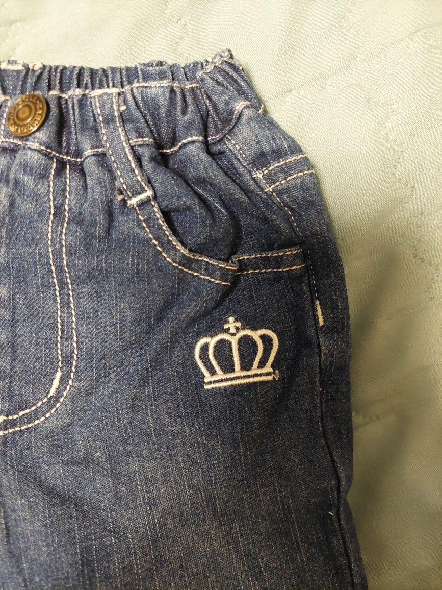 あたたかさベビードールのデニムパンツです 超美品✨ ・サイズ:90 ・カラー: デニム ・ウエストゴム ・クラウンの刺繍あり ・使用感少なめ 試着のみ使用しました。綺麗な方だと思います。 サイズアウトしたので出品しました。 自宅保管してます。 中古品なのでご理解ください。 気になる方はご遠慮ください。 受渡し後のクレームはご遠慮ください。 支払いは現金のみでお願いいたします。 申し訳ないですが夜は受渡しできません。 受け渡し場所は白幡池公園、白楽駅、大口公園、白幡地区センター、白幡仲町公園、仲手原のセブンイレブンでも可能です。 よろしくお願いいたします。