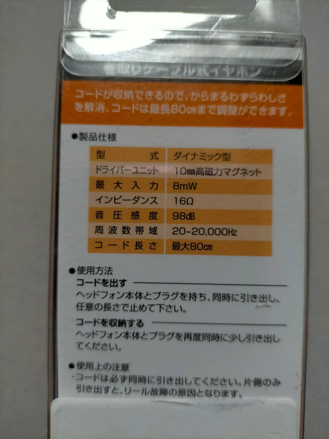 型式:ダイナミック型 ドライバーユニット:10mm高磁力マグネット 最大入力:8mW インピーダンス:16Ω 音圧感度:98dB 周波数帯域:20-20,000Hz コード長さ:最大80cm 対応機種:iPhone/Smart Phone/iPod nano/iPod touch/WALKMAN お渡しの場所は、アリオ亀有の他に亀有駅、金町駅、京成高砂駅等でも可能です