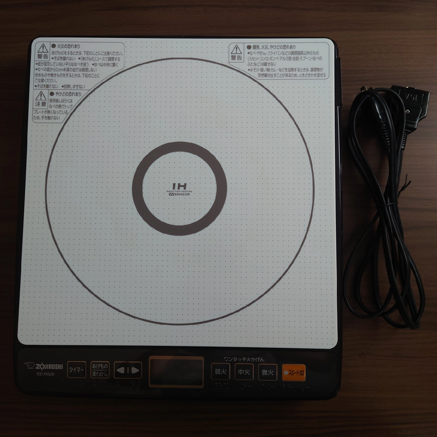 象印のIHクッキングヒーターです。 中古品であることご了承ください。 【情報】 ブランド:象印 (ZOJIRUSHI) 型番:EZ-HG26 【状態】 2019年1月に購入し、週2〜3回程度使用しました。 2口コンロ導入による買い替えの ため、現時点で特に不具合は見られておりません。 説明書等は保管していないためお付けできません。 可能な範囲で清掃しましたが、汚れや埃、臭いの付着が見られる場合がございます。神経質な方や細かく気にされる方は購入をご遠慮ください。
