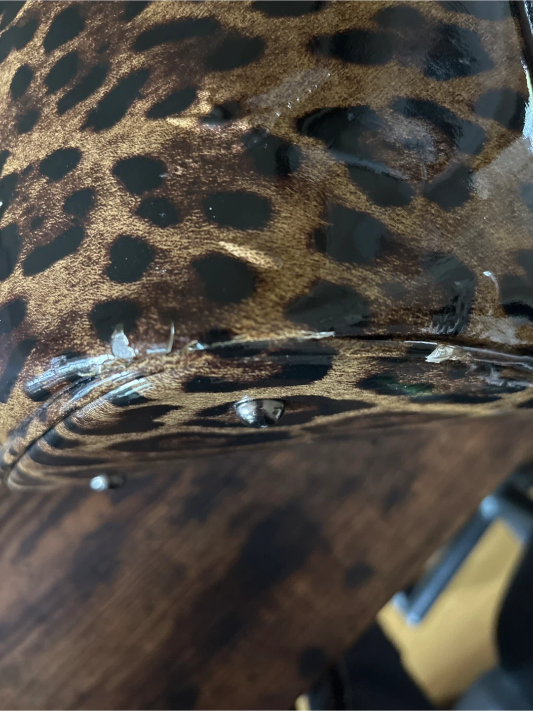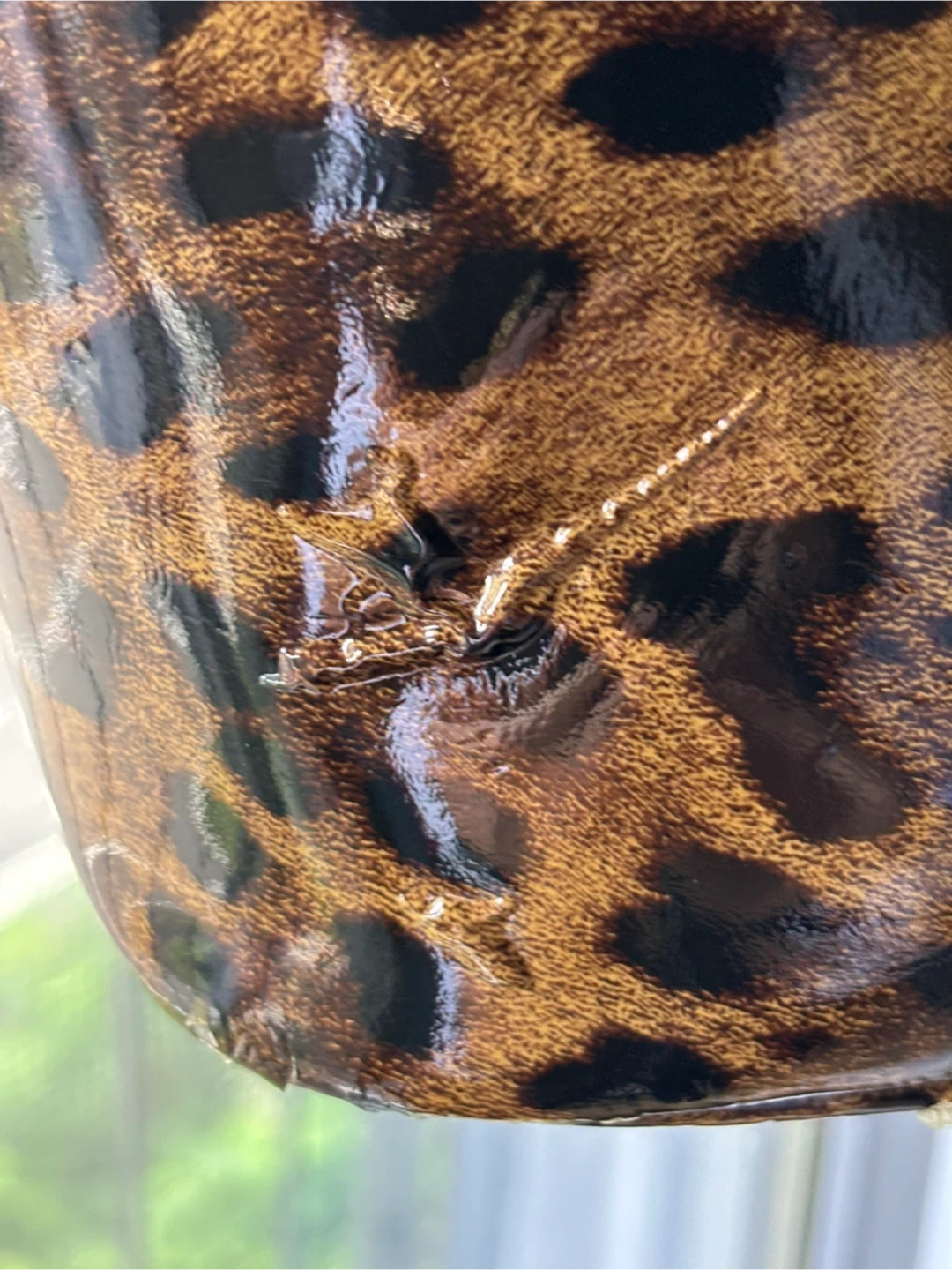 豹柄トートバッグ ブランド名は不明です。 写真から判断してください。 豹柄の皮の表面をビニールで 覆ってありますが、5〜6箇所ビニールが浮いています。写真で確認してください。 底の外周部分に2箇所小さな 禿げがあります。 写真で確認してください。 サイズ 底 横約22センチ 幅約17.5センチ 高さ約23センチ