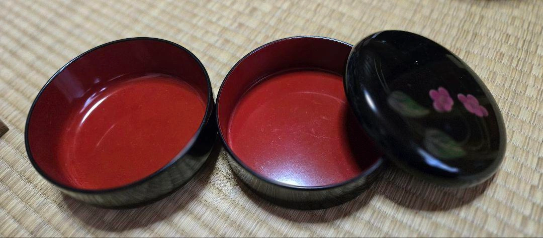 あたたかさ模様のデザインが特徴です。 未使用ですが自宅保管のため、ご理解ください。 付属品はありません。 - 色: 赤と黒 - デザイン: 花の模様 - 形状: 重箱 直径12cm 高さ10cm ご希望の方はお気軽にご連絡ください。