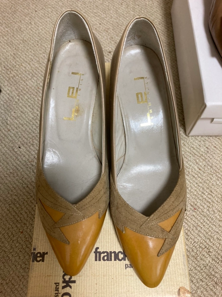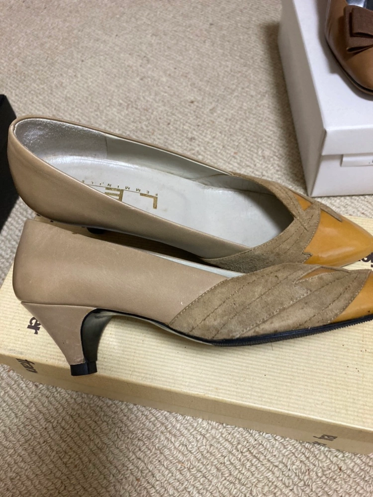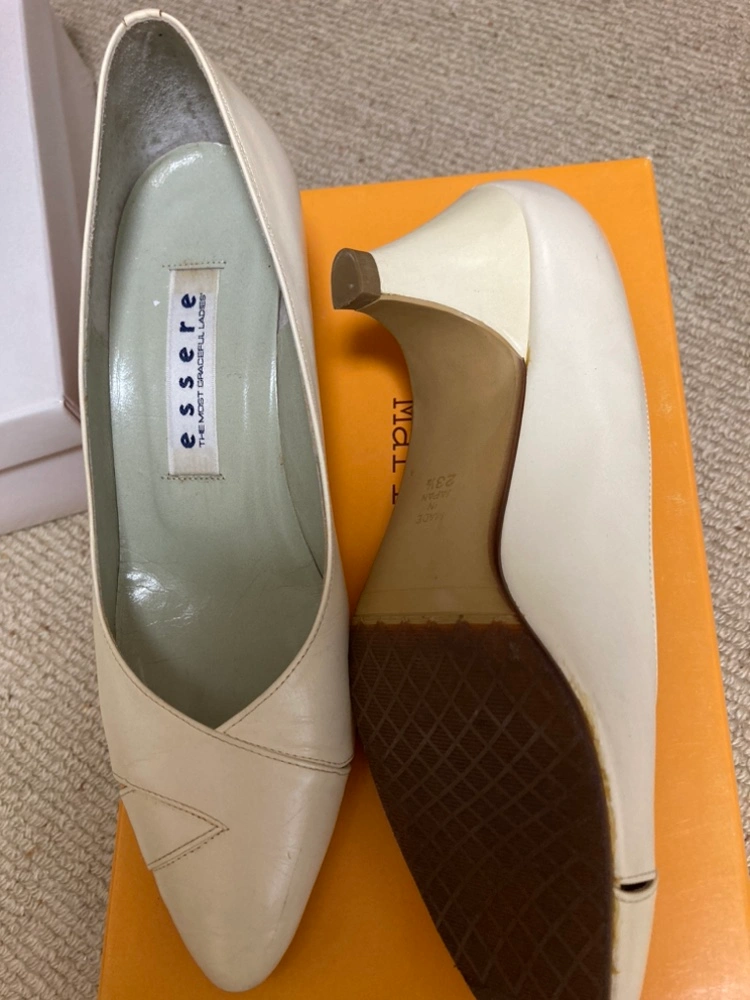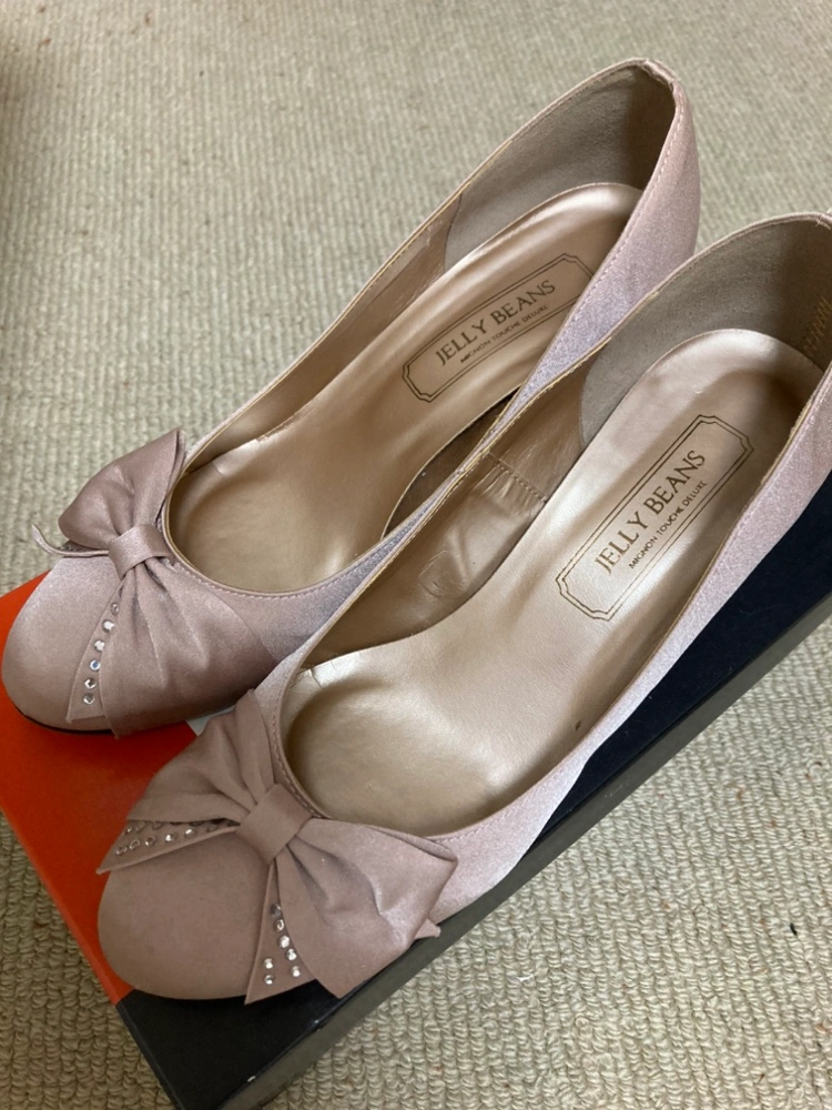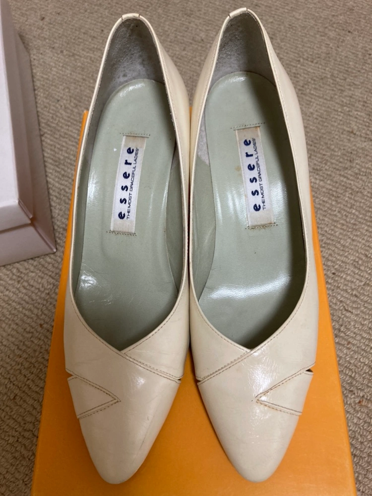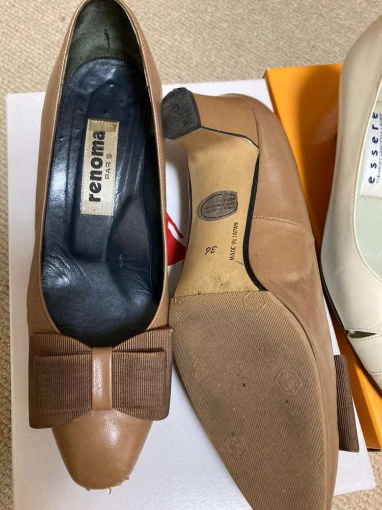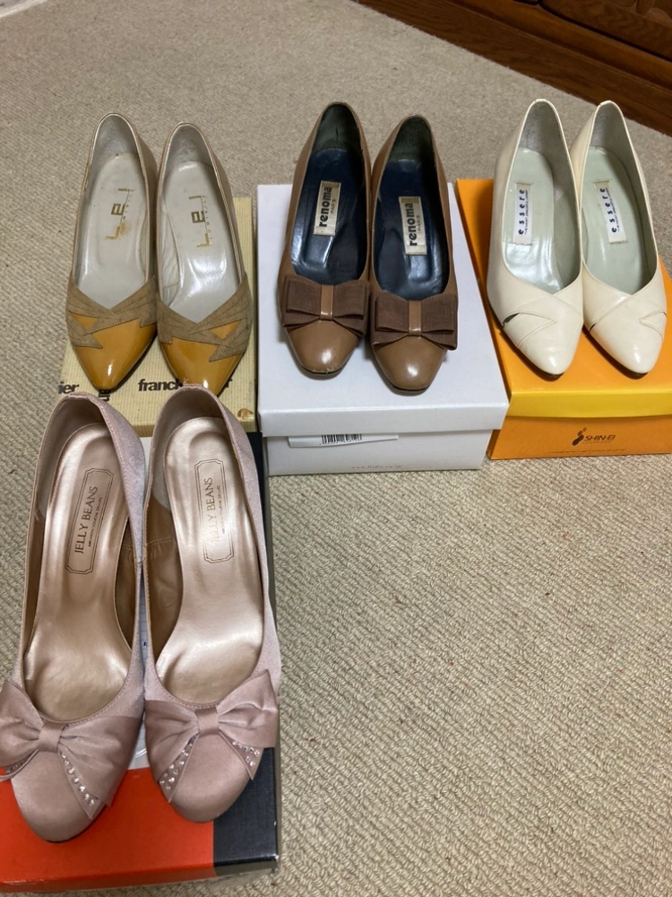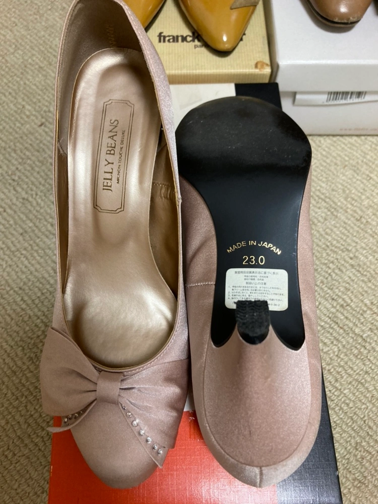 良品な状態は写真にある通りです。 各パンプスお一つにつき、¥800で販売します。おまとめ買いも大歓迎です。 どれも挙式やイベント時に1.2回数時間だけ履いたきりなので靴底も擦れや汚れが殆どありません。 ご希望者には、別メーカーになりますが外箱や不織布お付けします。 気になるorお迷いの方は、試着してからの判断可能です。(その際は大原公園近くの自宅マンション1階敷地内で願います。)