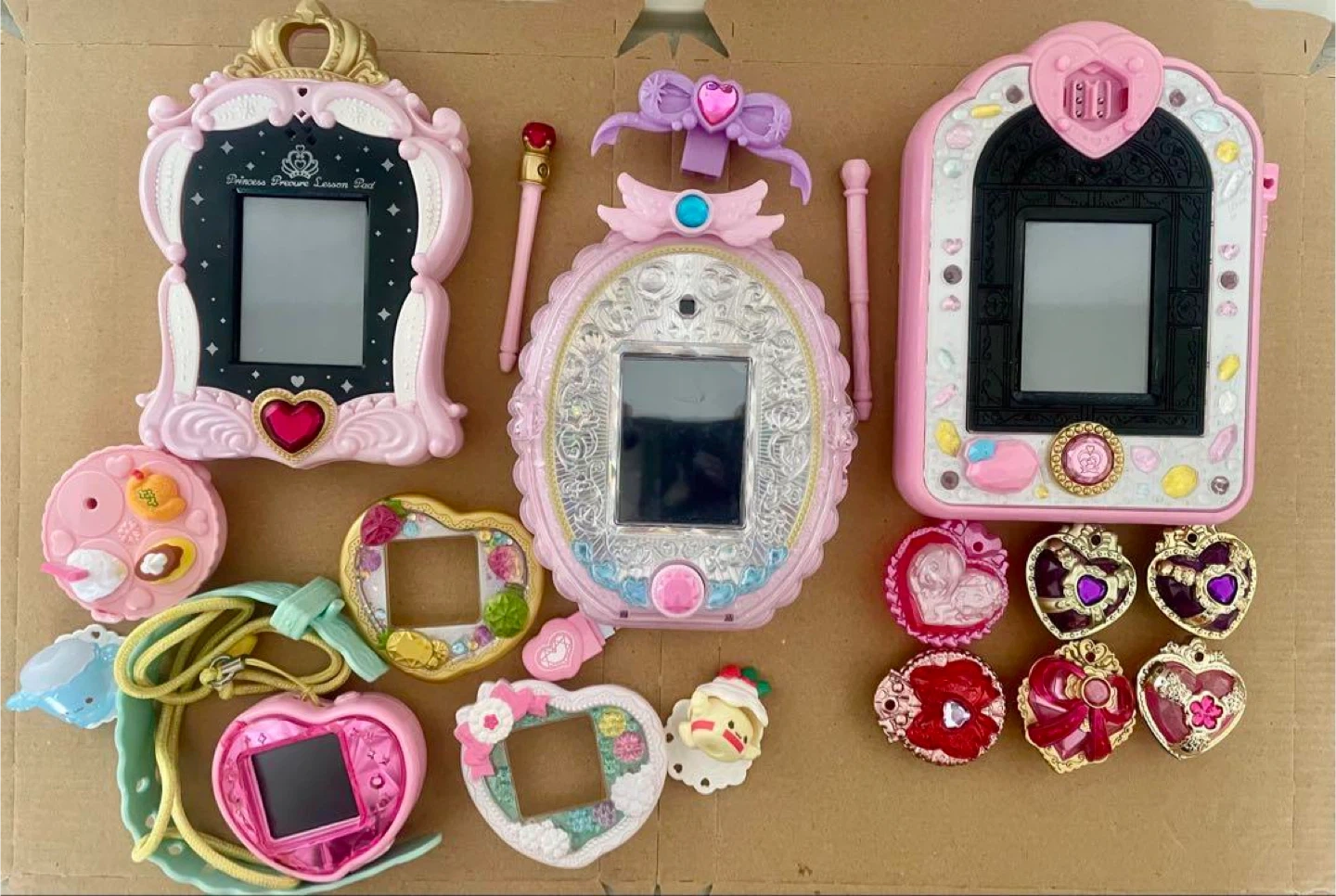 歴代の人気プリキュアおもちゃ、パッド型アイテムとウォッチ型アイテムをまとめて手に入れられる超豪華セットです! 子どもが大切に遊んだ中古品ですが、全て動作確認済みで、すぐに遊んでいただけます。 人気シリーズの変身アイテムやレッスンアイテムが一気に揃う、プリキュア好きなお子様へのプレゼントにもいかがでしょうか? 人気シリーズの主要アイテムが勢揃い! ひろがるスカイ!プリキュア:めざせ!あこがれのわたしプリキュアミラーパッド!オールスター わんだふるぷりきゅあ!:プリキュアミラーパッド わんだふるぷりきゅあ!ソフト※中身のみ発送します。 デリシャスパーティプリキュア:つくっておせわしてハートキュアウォッチ ・追加パーツ、データ デリシャスパーティプリキュア:ハートキュアウォッチ パーティアップVer. お子さまランチセット※写真参照:1つパーツ欠品あり デリシャスパーティプリキュア:ハートキュアウォッチ&ハートフルーツペンダントカバースペシャルセット※写真参照:1つパーツ欠品あり HUG(はぐ)っと!プリキュア:おしごといろいろ! プリキュアミライパッド Go! プリンセスプリキュア:プリンセスプリキュアレッスンパッド 商品の状態について 【動作確認済】全ての本体について、出品前に電源が入り、ゲームモードや各種操作ができることを確認済みです。 タッチペンなど、写真に写っている付属品は全てお付けします。 データは全て初期化済みです。 細かなスレや小傷、使用感があります。液晶部分にもスレや小傷がある場合がありますので、写真で状態をよくご確認ください。 箱や説明書は付属しません。写真に写っているものが全てです。 デリシャスパーティプリキュアの2商品にパーツ欠品があります。詳細は写真をご確認ください。遊ぶ上での大きな支障はないですが、ご了承ください。 ご購入にあたってのお願い。 電池は抜きます。 出品にあたり動作確認はしておりますが、あくまで中古品のため、万が一動作しない、一部機能が使えないなどの不具合があった場合も、返品、返金は対応できませんので、ご理解いただける方のみご購入ください。