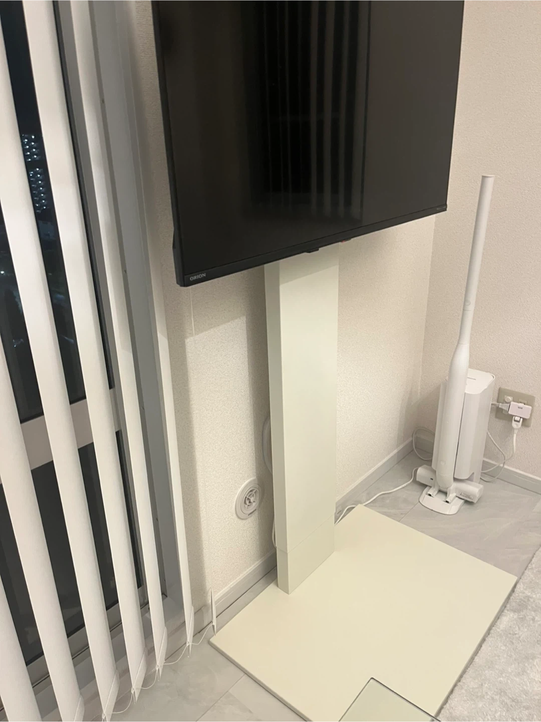 ご覧いただきありがとうございます。 テレビスタンドの出品です。 ⚠️テレビ本体は付属しません⚠️ EQUALSテレビスタンド WALL V2 HIGH TYPE 壁寄せタイプ(32~60インチ対応) ※キャスターなし 状態:ロゴなし、目立つキズ、スレ、ヤケなし ※EQUALSのロゴが足の天板部に ついていましたが、メラミンスポンジで 削り取っています。ご認識ください ※中古品のため微傷はご容赦ください 本体サイズ:W700×D520×H1290~1690mm 高さ調整:50mm調整ピッチ9段階 重量:約20.5kg ディスプレイ耐荷重:約40kg 色:サテンホワイト WALL INTERIOR TVSTAND V2 HIGH TYPE【定価:34,800円】 あるゆる空間で幅の広い視聴スタイルが楽しめるテレビスタンド。 壁との一体化を意識し、正面からネジ穴が見えないシンプルなデザインのモデル。