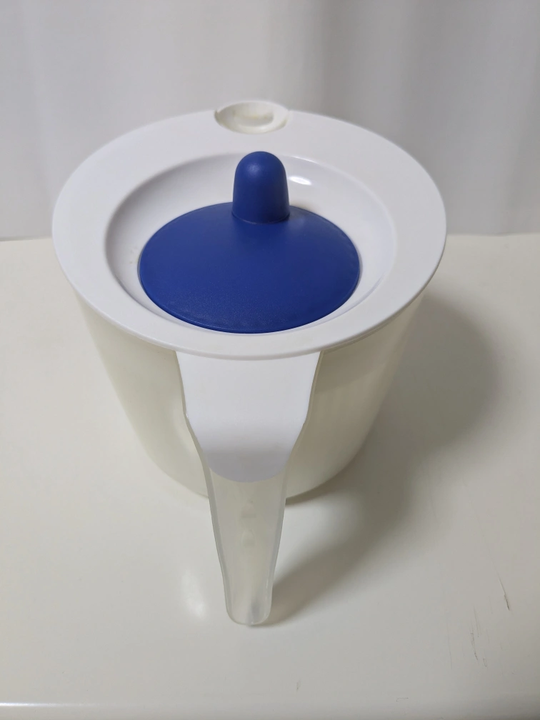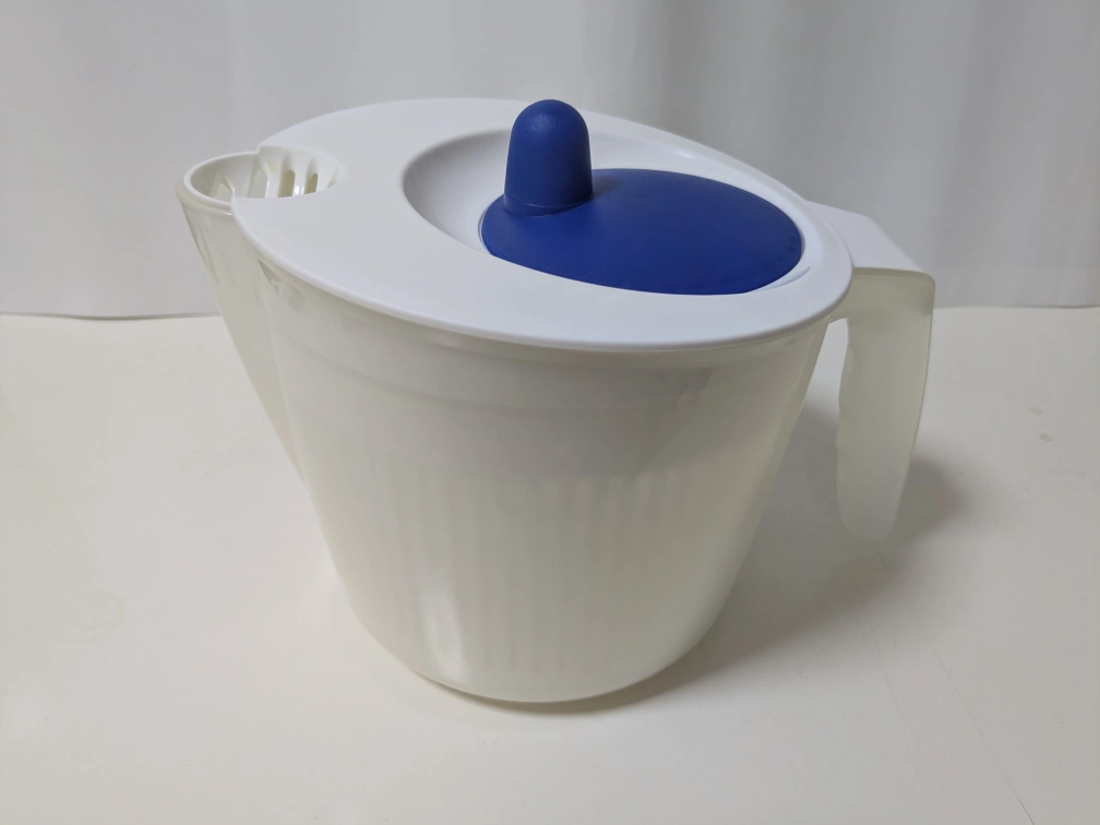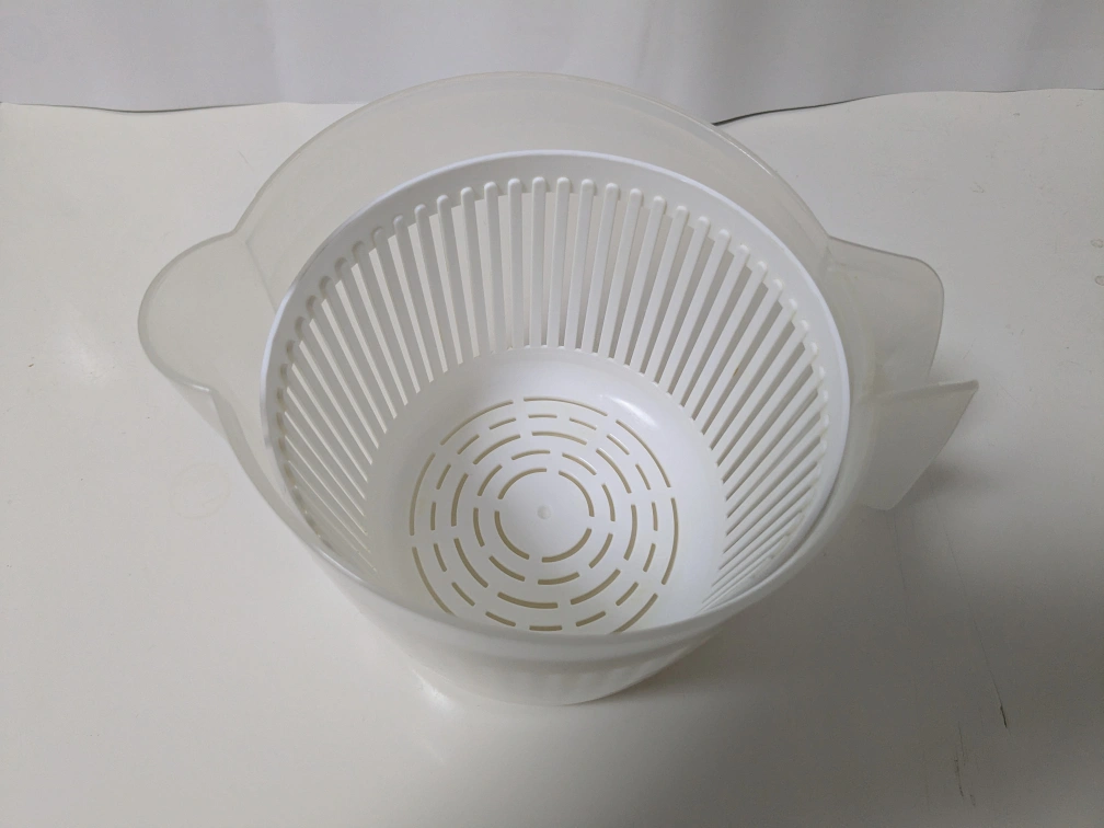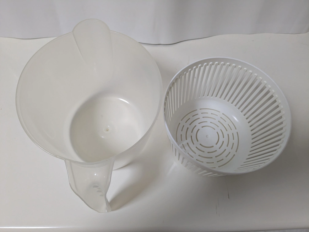 あたたかさ・サラダ等の野菜調理の際に便利な水切り器 ・清掃済 ・一部汚れがありますが、 比較的きれいな水切り器です。 ・寸法 長さ(最大) 約20cm 直径 約15cm 高さ(最大) 約15cm ・ビニール袋でのお渡し