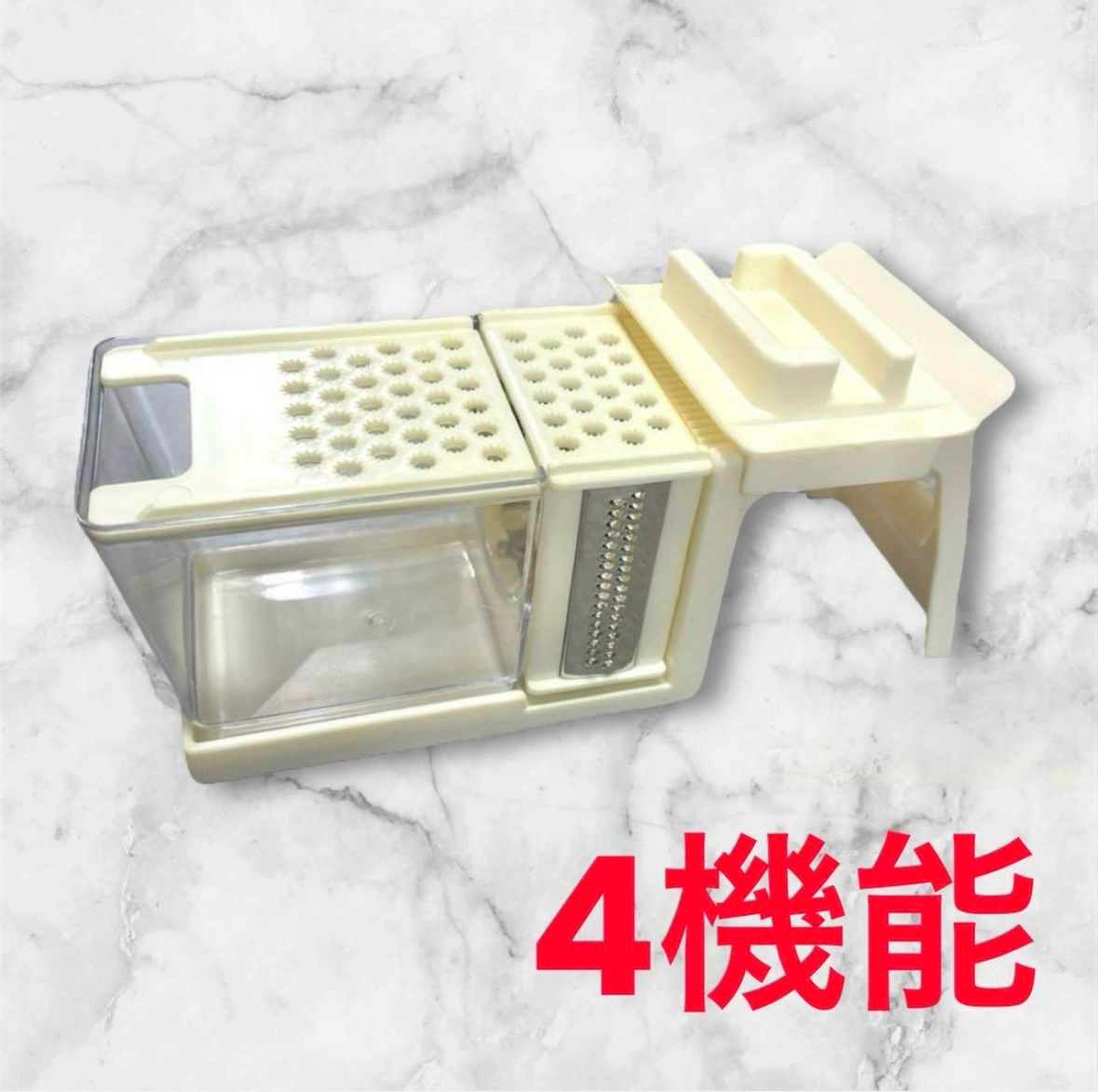 野菜調理器 四面回転 スライサー 多機能 キッチン用品 調理器具 ☆スライス、おろし、千切り、つま切りの4機能 ☆補助器具付きで安全 ☆取り外し可能 ☆四面回転で切替かんたん! ♡すりおろしやスライスなど簡単で便利 ♡取り外し可能で洗いやすい! 主にすりおろしに使用してました 新しいものを購入したので出品します。 ※多少の汚れ、変色あり 1カ所ヒビ割れありますが、使用には問題ありません。 まだまだ使用いただけます。 ※箱はありません 他サイトでも出品中です。 他で売れた場合、急に削除しますので、ご了承ください