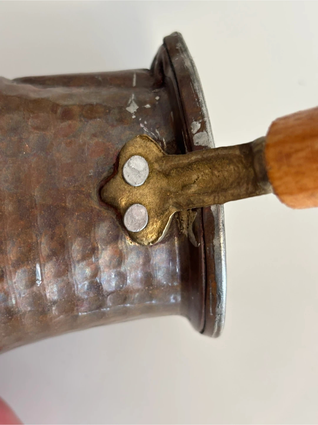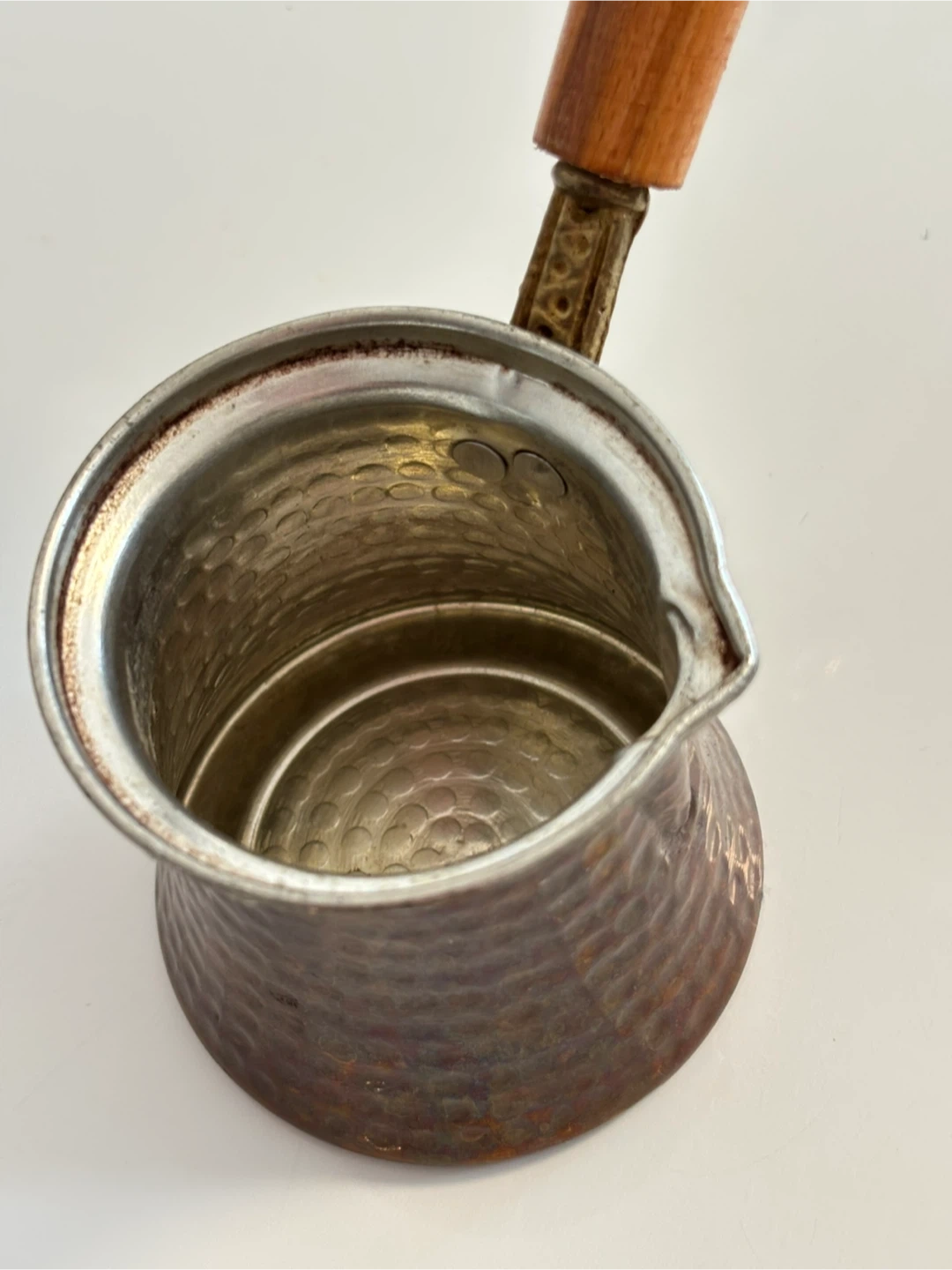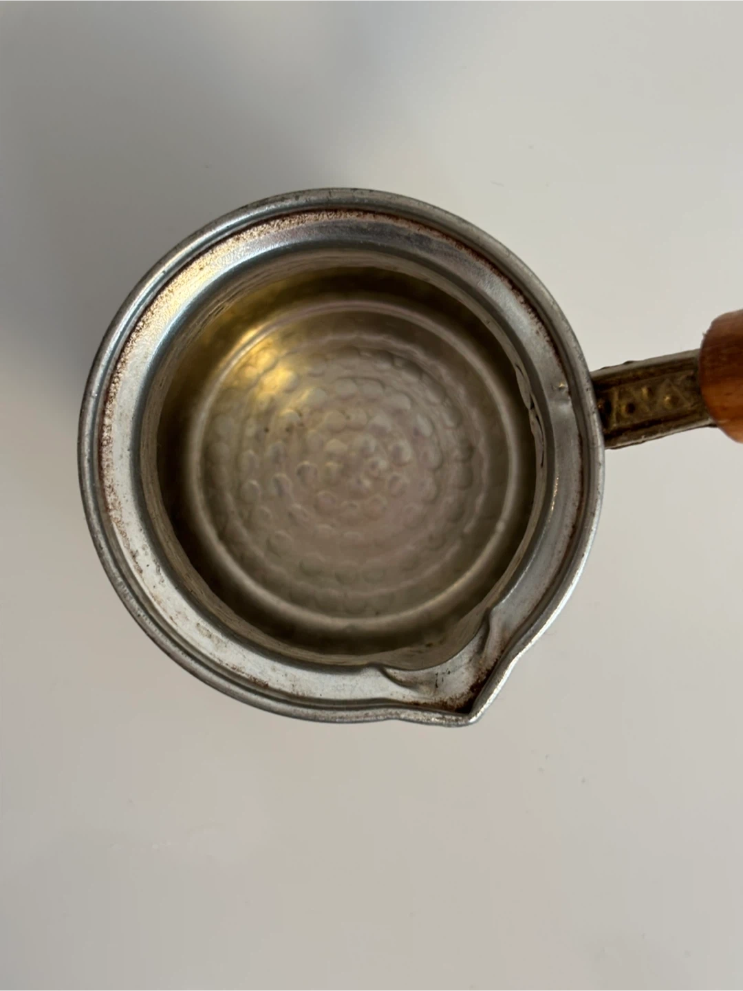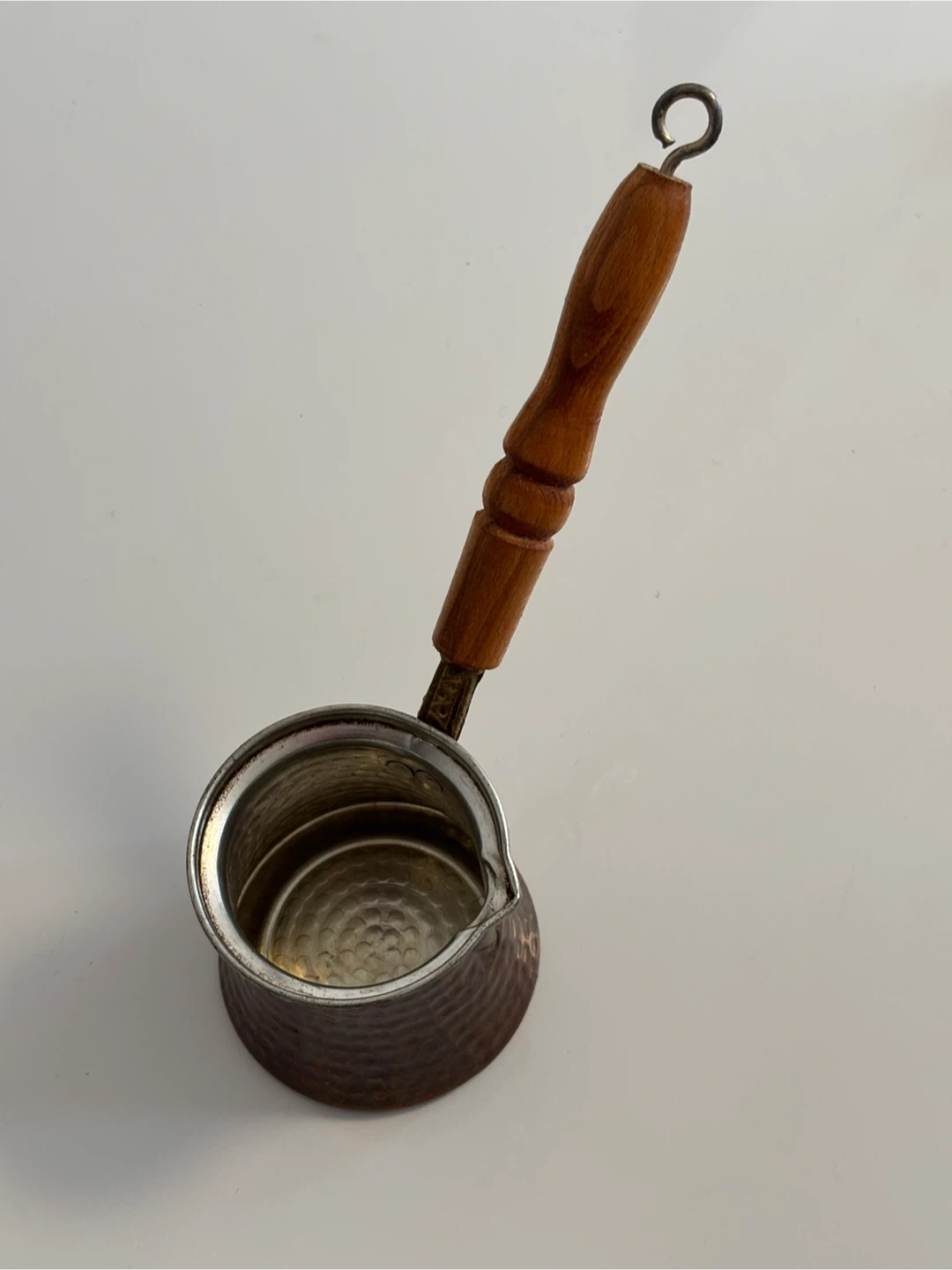 銅製イブリック(ジェズべ)・トルコ式コーヒー用ポットです ・色:銅色 ・素材:銅、木 ・状態:使用感あり、シミや変色あり 数ヶ月ほど使いましたが、もっと大きめのものを購入したため出品します。 説明には「3人分」とありますが、私は1人分で使用していました。 新しいコーヒーの淹れ方を試してみませんか?☕️ 中古品であることご了承ください