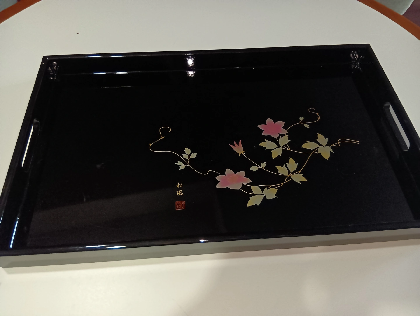 【木製 お盆 トレー &茶托】 6枚セット 花 蝶 柄 未使用品