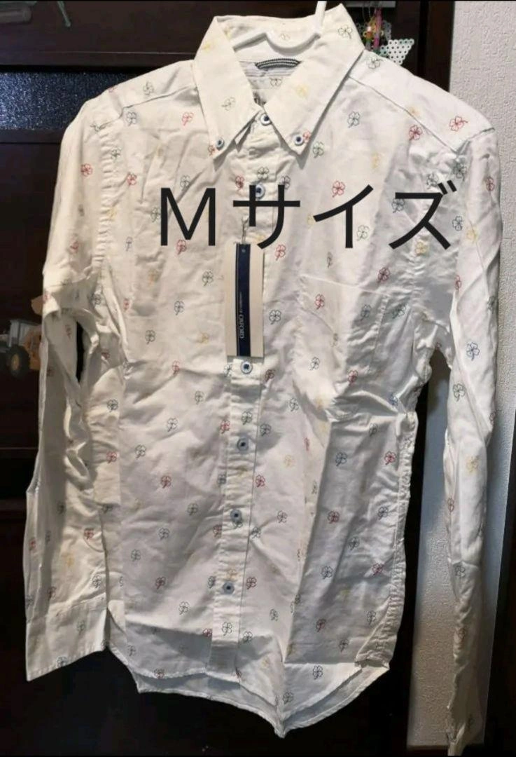 長袖シャツ Mサイズ・クローバー柄 ホワイト新品