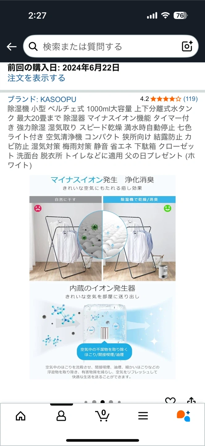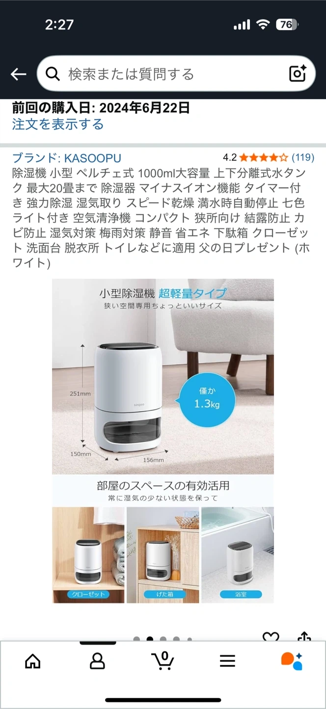 小型除湿機です。箱、説明書は捨ててしまって本体とコードだけです。 ・カラー:ホワイト ・付属品:ACアダプター ・使用感少なめ 中古品であることご了承ください。 ノークレームノーリターンでお願いします。 Amazonで購入し、ワンシーズンだけ使いました。動作問題ありません。 部屋にものが多いので整理のためタダで出品します。 説明書付いていないですが、アダプターをコンセントと繋げば作動します。 除湿機 小型 ペルチェ式 1000ml大容量 上下分離式水タンク... https://www.amazon.jp/dp/B0CYGWXXZC?ref=ppx_pop_mob_ap_share