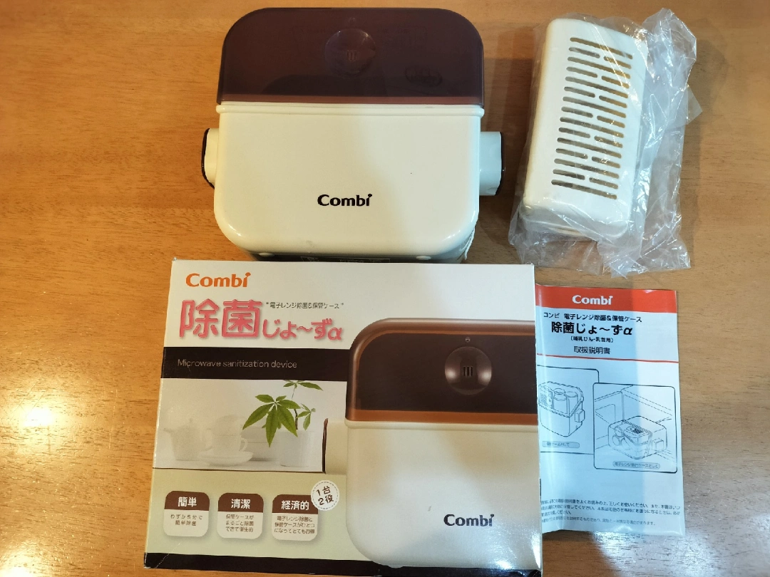 COMBI コンビ 哺乳びん除菌ケース 除菌じょーずαです。 電子レンジで消毒でき、消毒後はそのままケースで保管できます。 大きな汚れ等は見当たらず、まだまだ使っていただけます。 小物ケースは未使用です。 直接引き渡しできる方、宜しくお願いいたします。 ◉対象年齢:0カ月から ◉定価:3500円 ◉色:バニラ ブラウン ベージュ