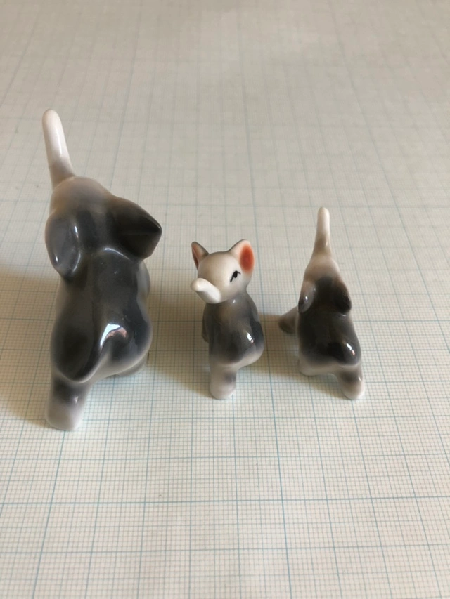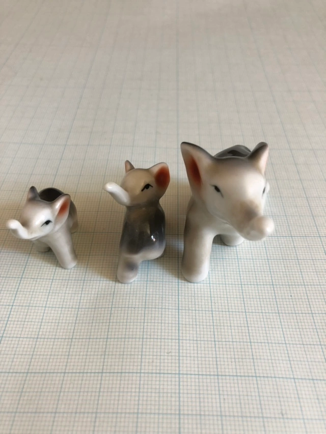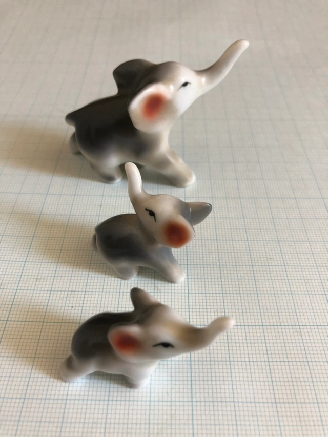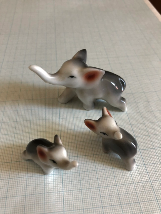 あたたかさ陶器 象さん3匹 1センチマスの方眼紙の上で撮ってます 親像の鼻折れて接着剤でとめてあります それ以外は問題ないと思います 宜しくお願います