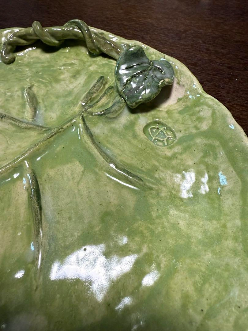 陶芸、手作りの葉っぱのお皿です。 植物模様の立体的な陶器皿です。 - 色: 緑色 - デザイン: 植物の模様が施された皿 - 素材: 陶器 - 形状: 円形 - 装飾: 立体的な植物の装飾 手びねりの作品です。 ご希望の方はお気軽にご連絡ください。