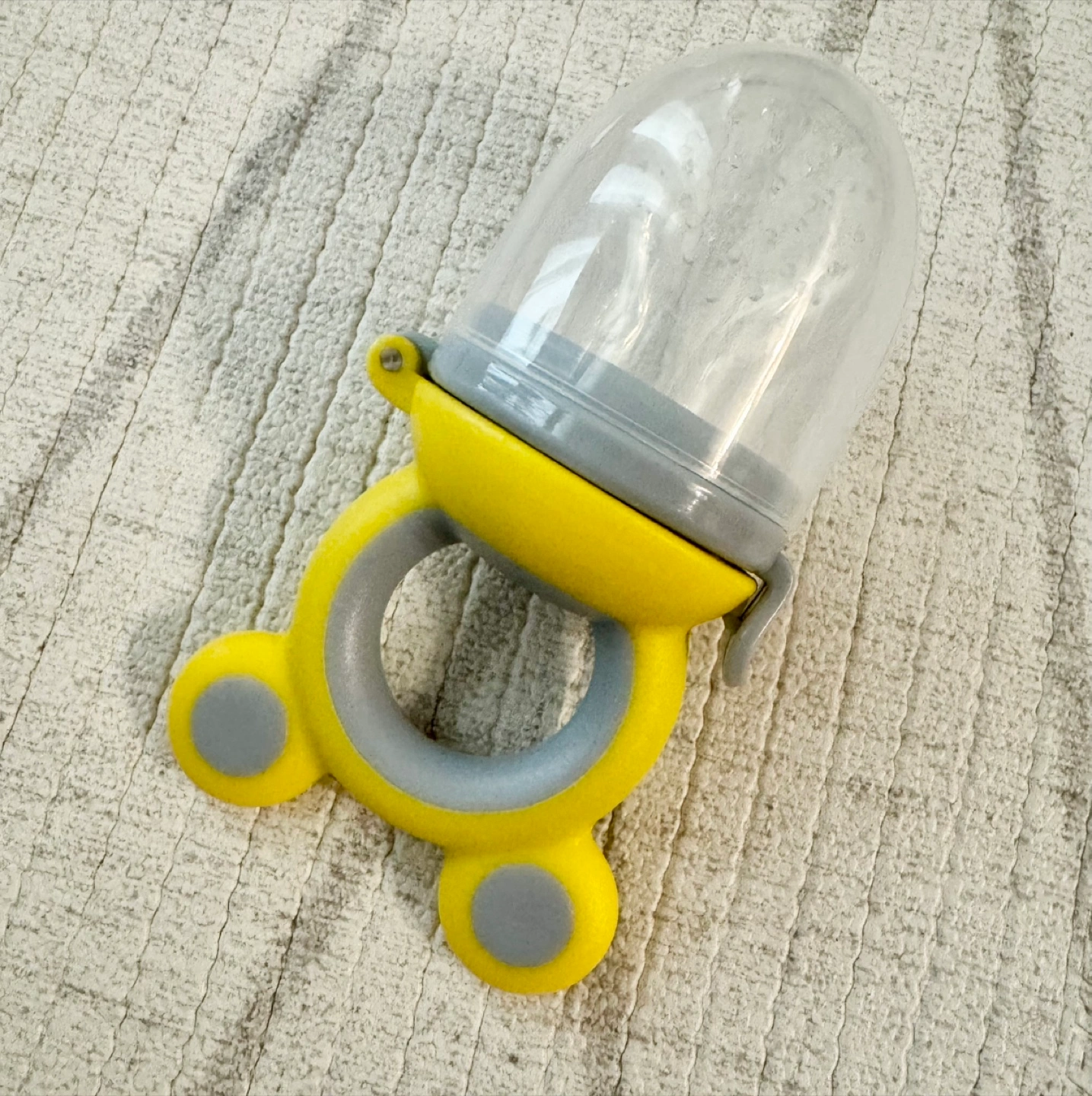 離乳食フィーダー 離乳食おしゃぶ り 乳首の中にフルーツ等を入れて、繊維で飲めない等を気にせず、美味しい果汁等を吸わせて食べさせてあげることができます。 離乳食やフルーツを簡単に食べさせられる、これからの子育てのベストマストアイテム。 果物を食べて欲しく、一度だけ試しましたがうちの子にはヒットしなかったためその後使用していませんでした。 サイズはLです。12ヶ月〜36ヶ月対象とのこと。 色はイエローグレーになります。