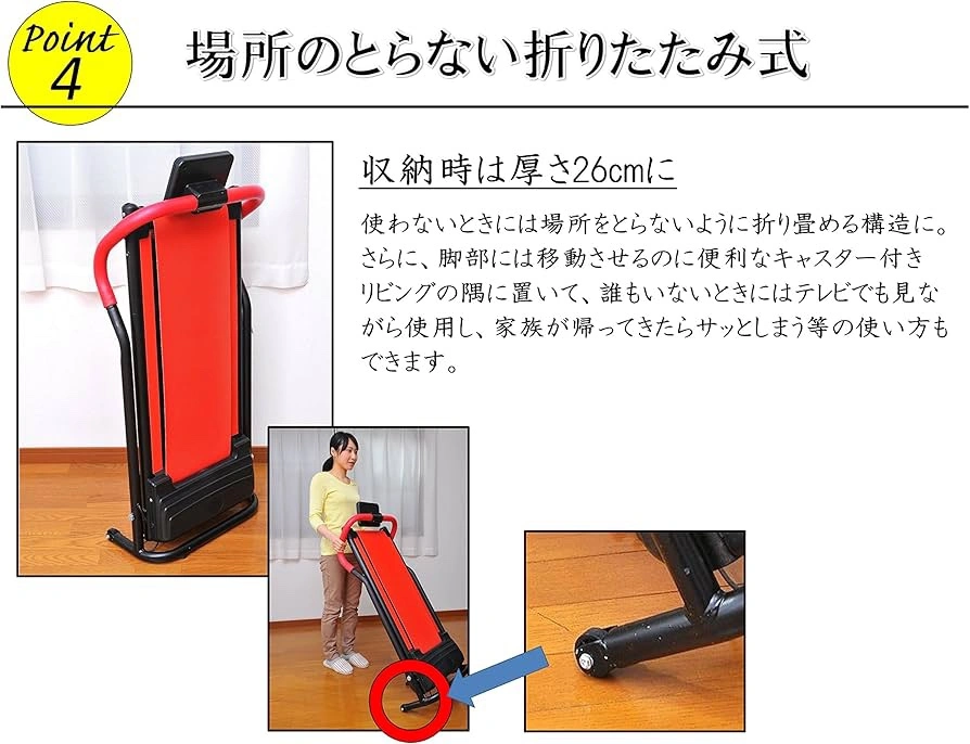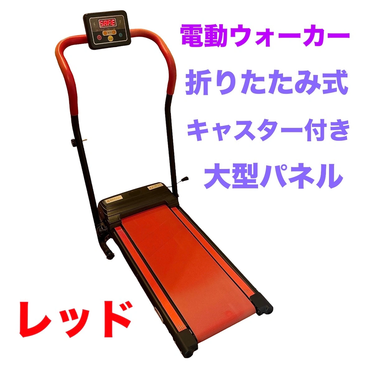電動ウォーカー 折りたたみ コンパクト ウォーキング・ランニングマシン ☆動作確認済み ☆カラー…レッド ブランド:野澤産業(Nozawa Sangyo) ♡大型で見やすいパネル ♡ご自宅でテレビでも見ながら、楽しくウォーキング ♡しっかり掴みやすいグリップ ♡セーフティーピン付きで安心 ※セーフティーピンのクリップが無くなってしまいました。何か他のもので紐に付けていただければと思います ♡場所のとらない折りたたみ式 ♡足部には移動に便利なキャスター付き ※キャスターの片方が欠けてます 自宅保管による色褪せ、多少の破損ありますが、2度程しか使用してないので、目立った汚れや傷は見当たりません。 ディスプレイタイプ :液晶 フレーム:スチールパイプ ハンドルカバー:ポリウレタン 本体サイズ:幅55×奥行111.5×高さ113cm 収納サイズ:幅55×奥行28×高さ113cm 定格電圧:100V 定格周波数:50/60Hz 定格消費電力:300W トレーニング エクササイズ