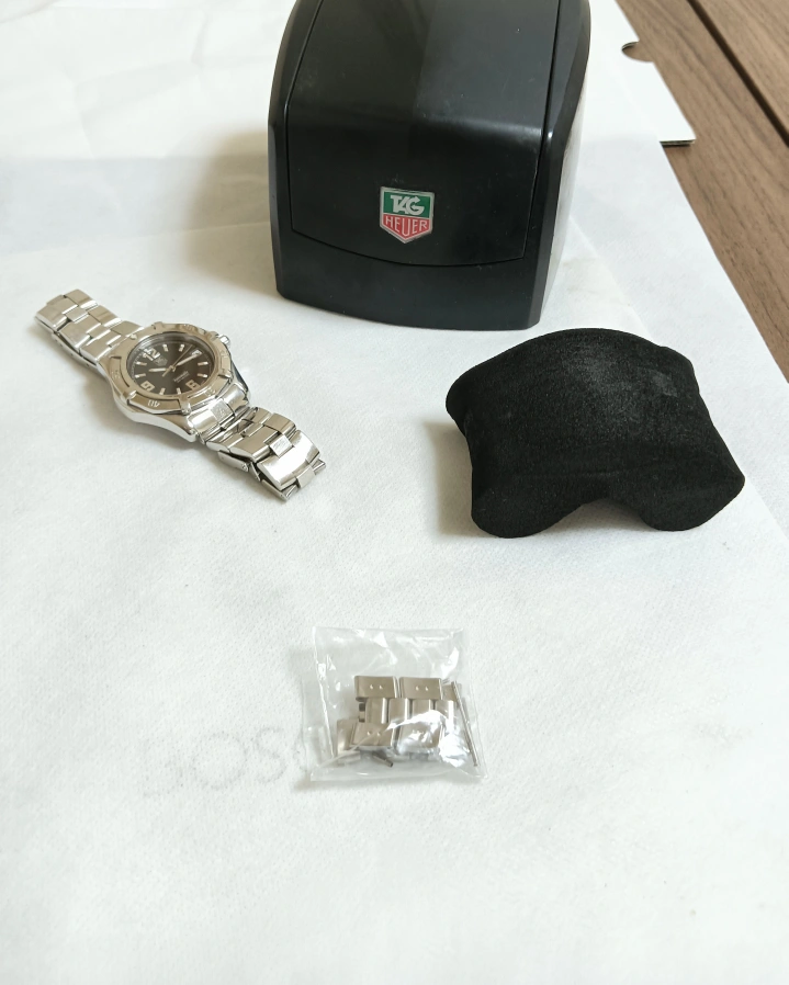 ★★  非常に美品。 モチロン正確作動中。 TAG HEUER  タグホイヤー エクスクルーシブ 自動巻き オートマチック デイト メンズ  ユニセックス  腕時計。 型番 WN2111  販売価格 約17万 日差 約+10秒程で正確作動。 ★★ タグホイヤーの自動巻きデイトエクスクルーシブです。 基本的にメンズですが、ユニセックスで使えます。 ★★ 写真の通り時計本体及びバックルブレス含め非常に綺麗な状態です。 腕周り 現在15.5cm(余りコマ4個有り)バックル調整付き。 color シルバー 正規ケース、余りコマ4個付き。 ★★