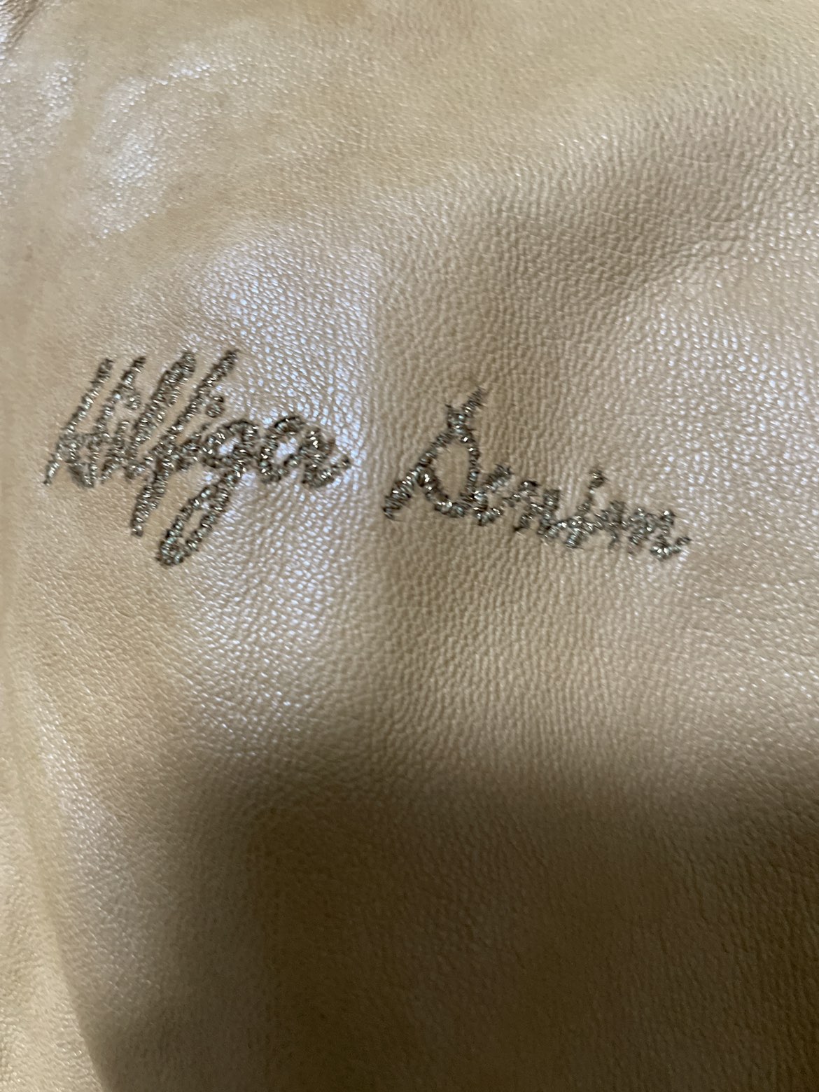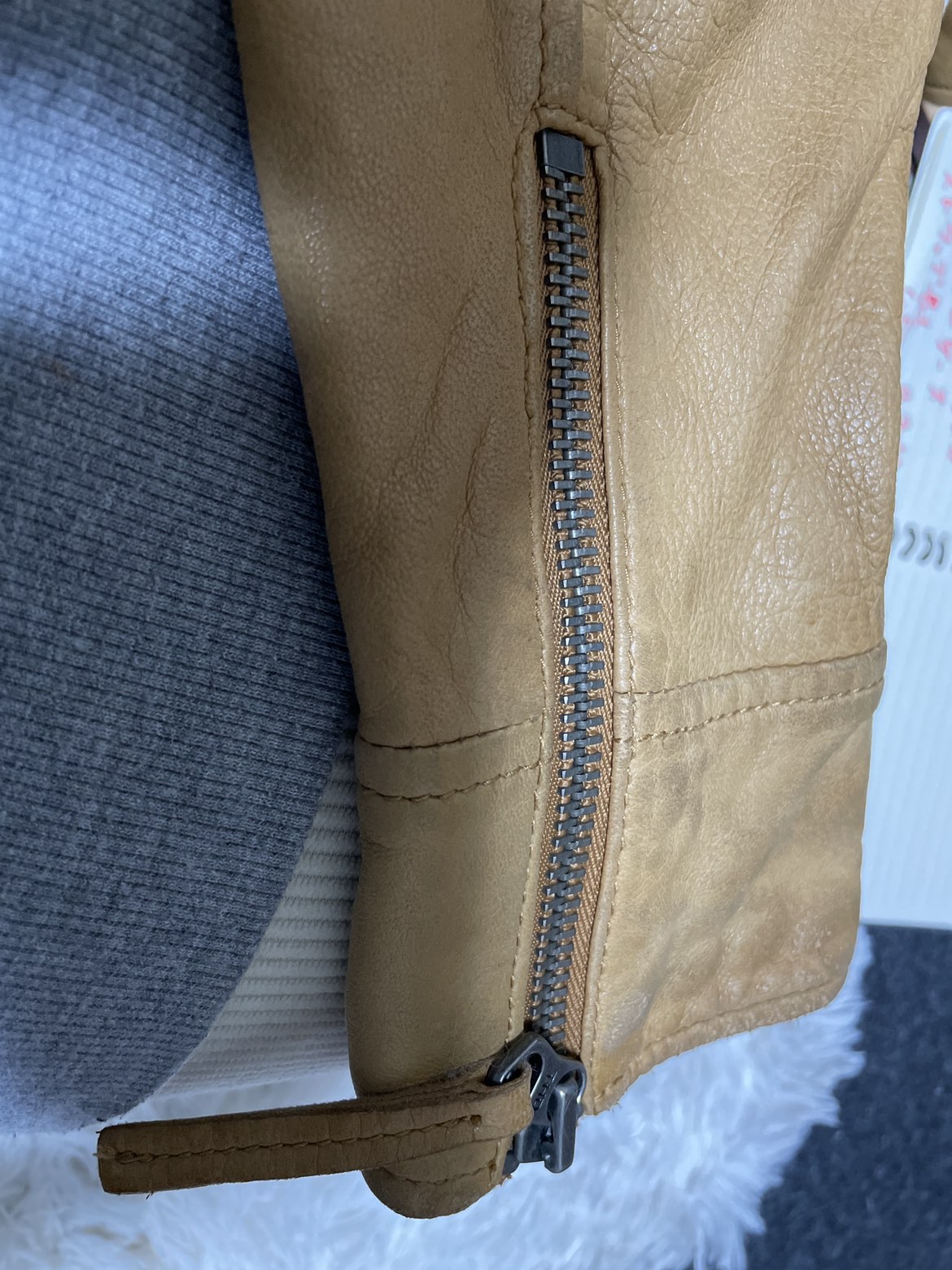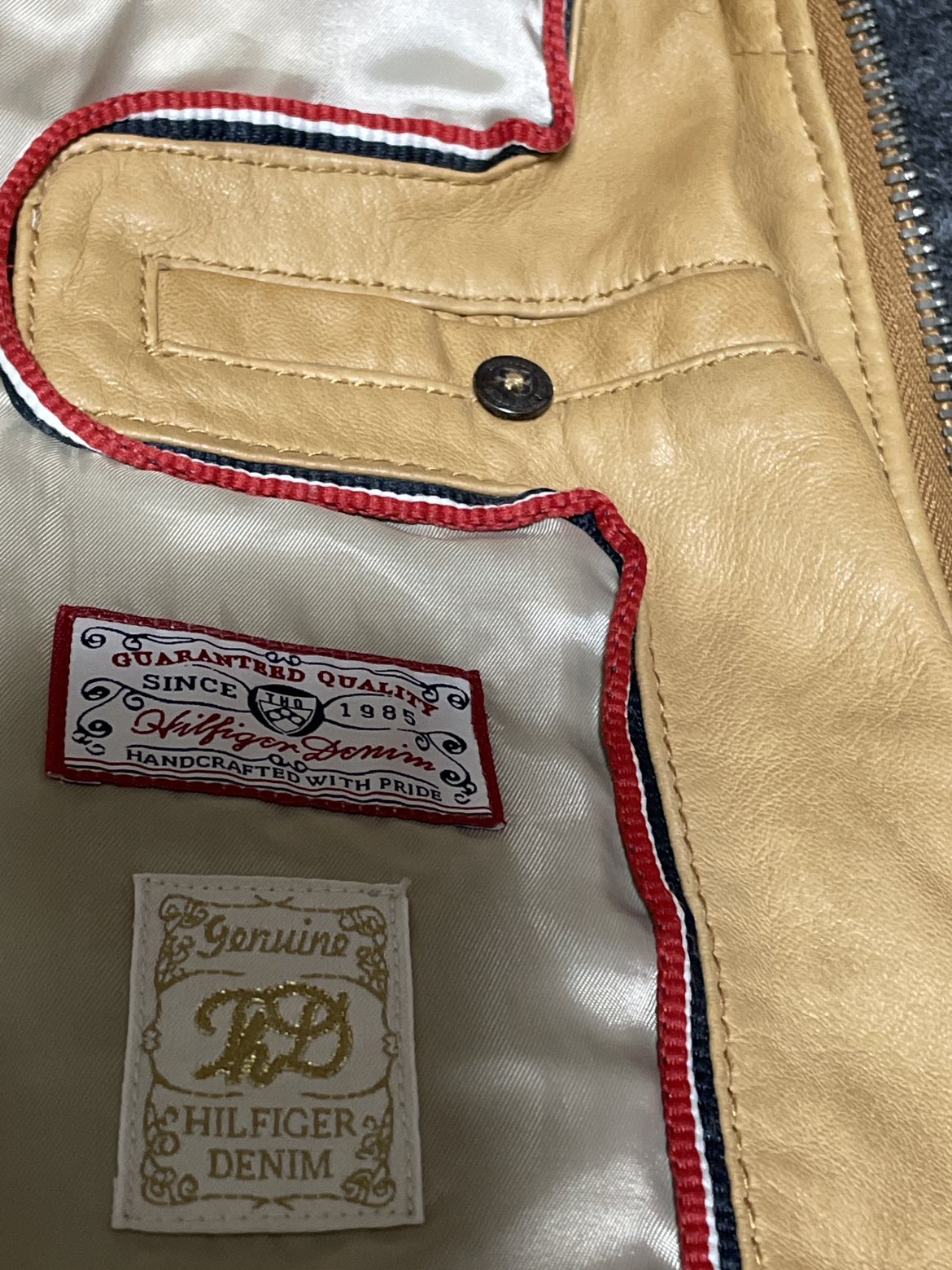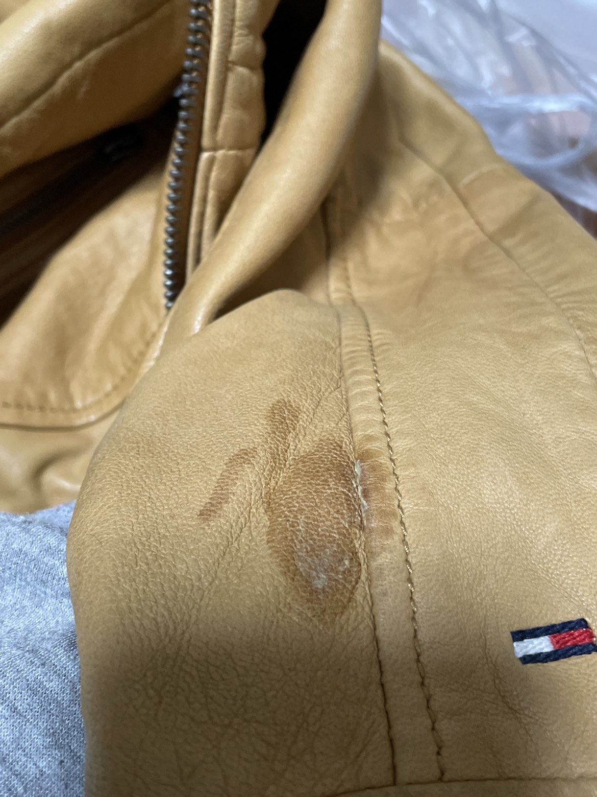 本革のジャンパーです。年代物で、メーカーは不明。古着ならではの柔らかい革ジャン。後ろに プリントされていた部分ははがれて、いますが、革には影響ありません。着たかったのですが、後ろのプリント部分、着るには若くありませんでした。古着好きな方、お若い方にお譲りしたく 出品します。メンズですが、女性の方でも、着こなせるデザインです。実物をごらんになって、試着してみていただいた上で、検討して下さい。お値段もお安くしています。色は、黄色に近い薄茶色?です。 状態が悪いとしたのは、年代物でプリントの剥がれがあるためです。