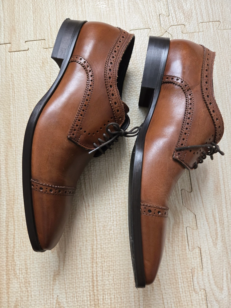 商品名:Bruno Magli for Alexander Julian イタリア製レザ ーシューズ(サイズ43/元箱付き) 商品説明: クラシカルなブローグデザインが魅力のBruno Magli製レザーシューズ。キャップトゥと上質なダークブラウンの本革が、エレガントで洗練された印象を与えます。インソールには「Made in Italy for Alexander Julian」の刻印入りで、特別なコラボレーションによる希少価値の高い一足です。ヨーロッパサイズ43(日本サイズ換算で約27.5~28cm前後)となっており、洗練された大人の足元を美しく彩ります。 サイズ:43(約27.5〜28cm相当) カラー:ダークブラウン 素材:本革 原産国:イタリア 付属品:オリジナルボックス付き 1度履いたきり、履く機会がないので出品します。 何ヵ所かキズがありますが、全体的には美品かと思います。 素人検品なので見落としはご容赦ください。 あくまで中古品ということで、ノンクレーム、ノンリターンにご理解いただきご購入ください。 受渡しは学芸大学駅周辺での引取希望すが、近場であればお持ちすることも可能です。 くつ 靴 革靴 レザー レザーシューズ