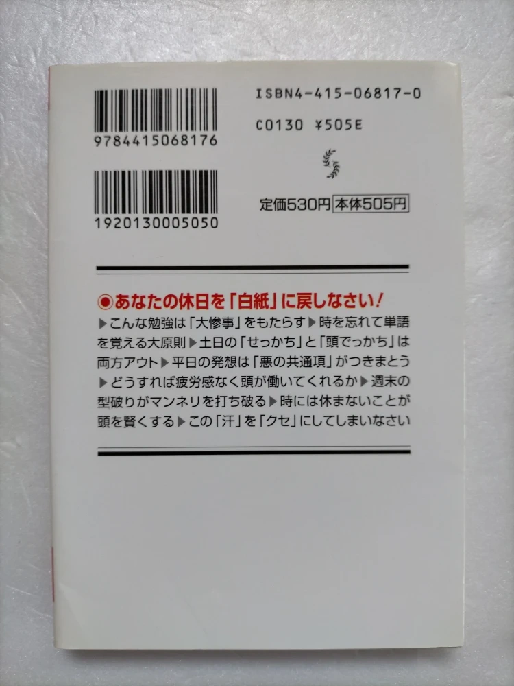 頭は「週末」に鋭くなる! 記憶力・集中力・ひらめきを高める 松本幸夫 定価: 505 円+税 成美文庫 自宅保管のため細かい傷や折れ・汚れ等がございます。