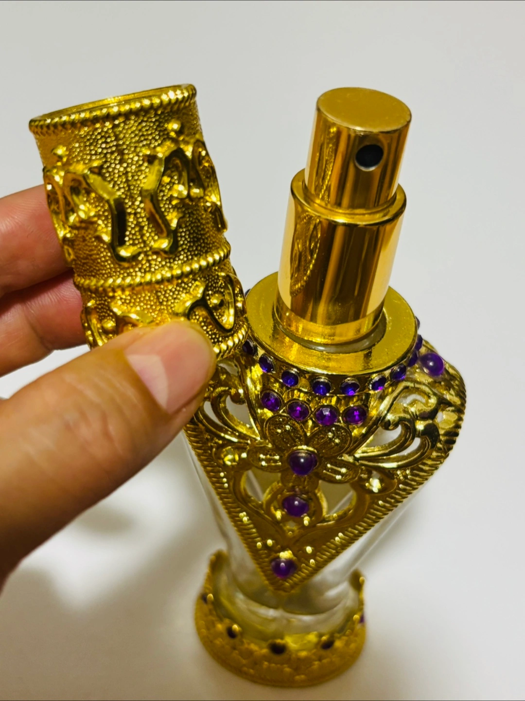 エレガントな金色と紫色の装飾が特徴の香水瓶セット。 空瓶です - デザイン: 金色の装飾が施された香水瓶 - 素材: ガラスと金属の組み合わせ - 色: 金色と紫色の宝石 - デザイン: エレガントな装飾が施された香水瓶 - 色: 透明なガラスと金色の装飾 - デザイン: 装飾的な銅色の香水瓶 - 色: 銅色と琥珀色の宝石 ご覧いただきありがとうございます。 可愛くて飾っておりました! 香水は入れた事ありません スプレータイプ 高さ約14センチ 丸瓶 高さ 約8センチ 1番小さいもので 高さ 約5センチ よろしくお願い致します