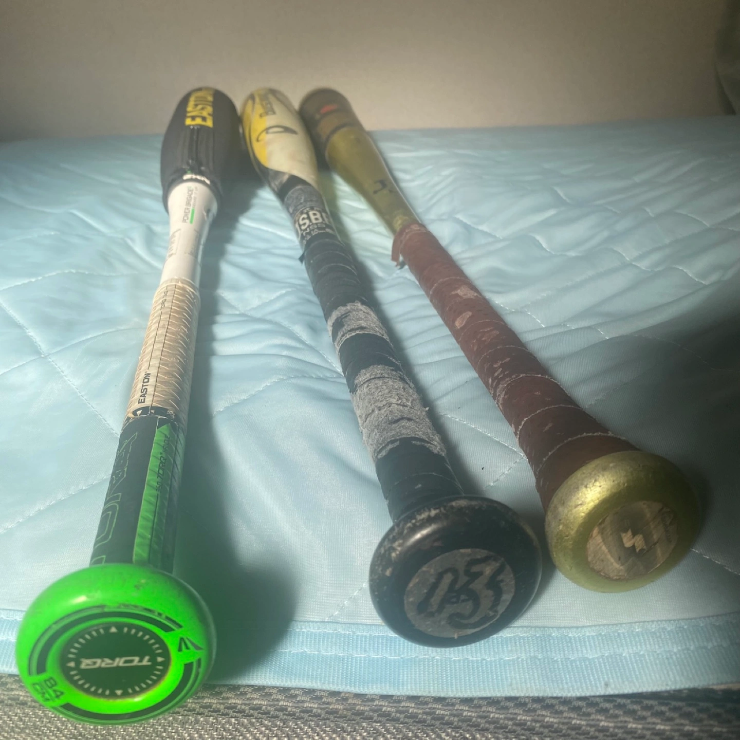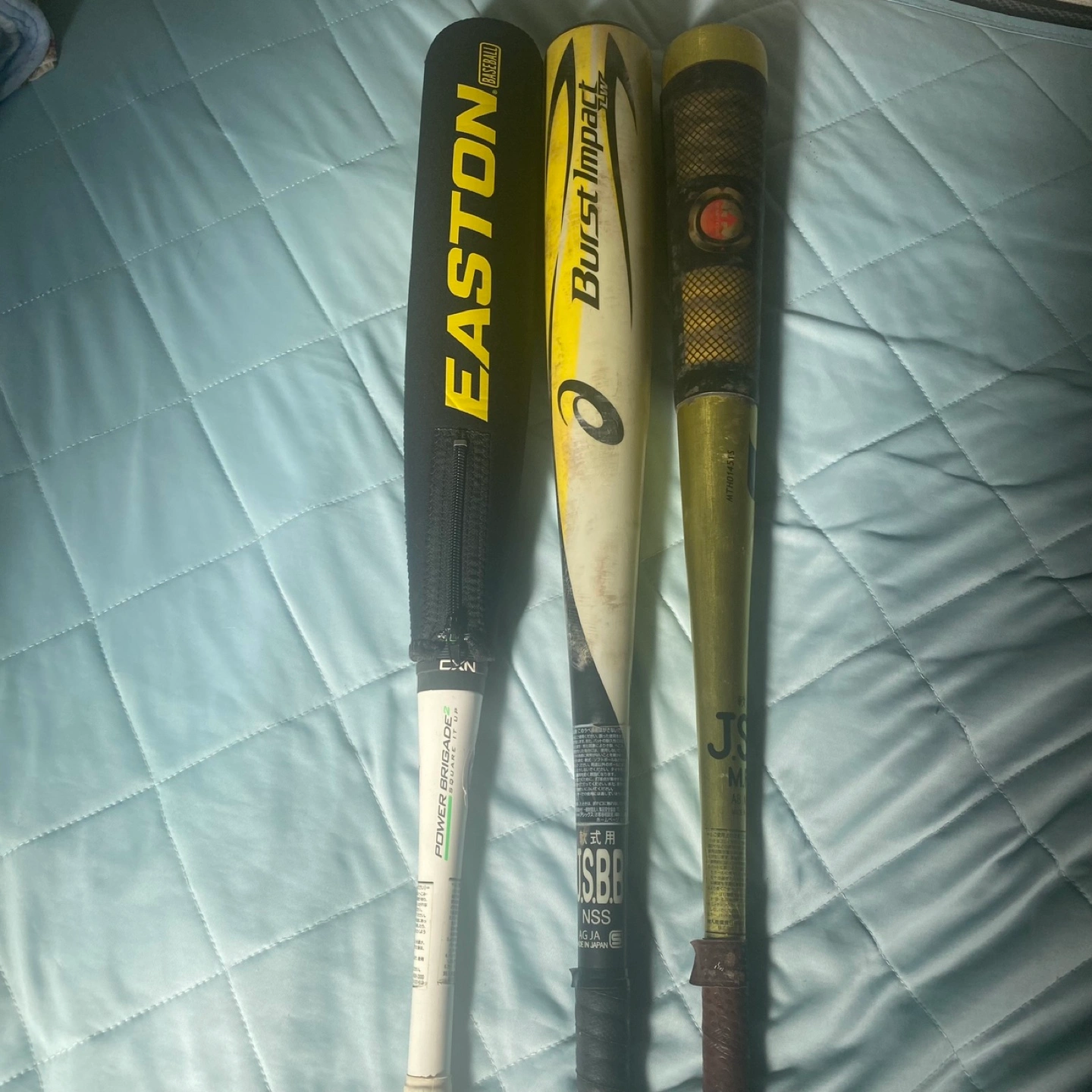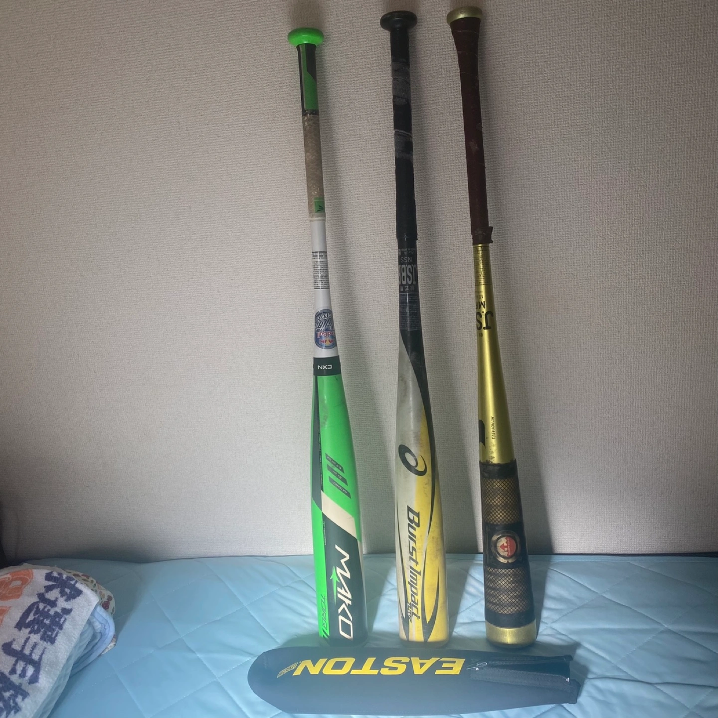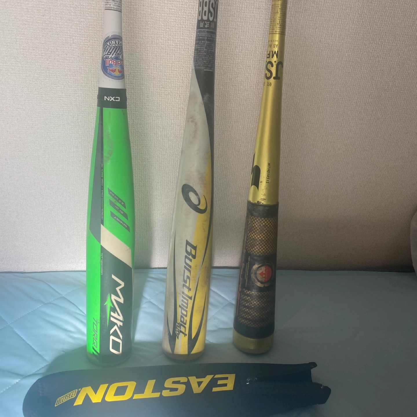 定価だと3本で10万以上します。 バットケース2本入り新品と1本入りケース中古もお付けします。 イーストンのバットは珍しい物でグリップを回してミドルバランスからトップバランスにも変えられる仕様で以前YouTubeでも紹介された特別な1本です ブーストインパクトは飛距離が出ます。 ホームランバッター向きでトップバランスです。 1番右のバットもトップバランスで軽くて振り易いと思います。 写真の通り中古品なのでノークレームで宜しくお願いします。